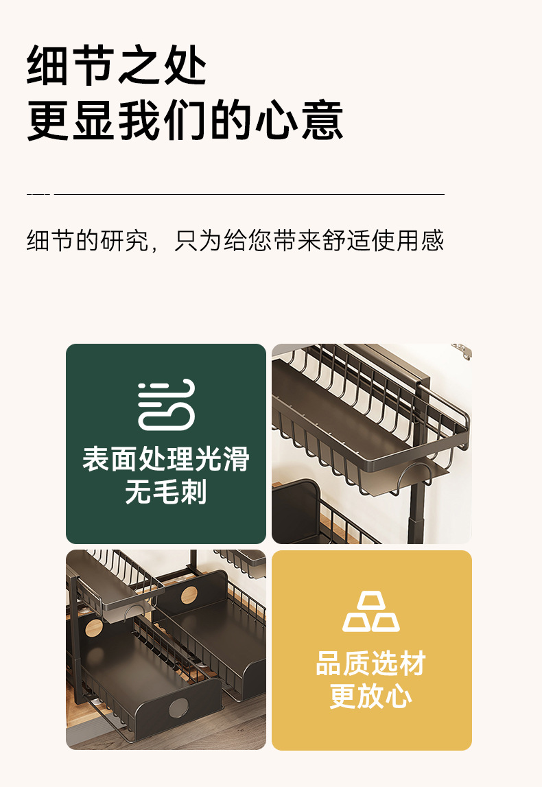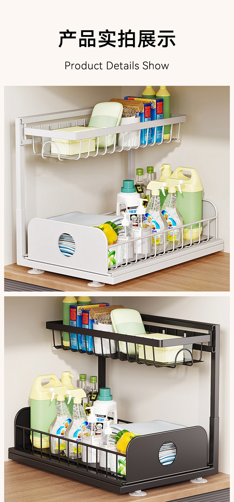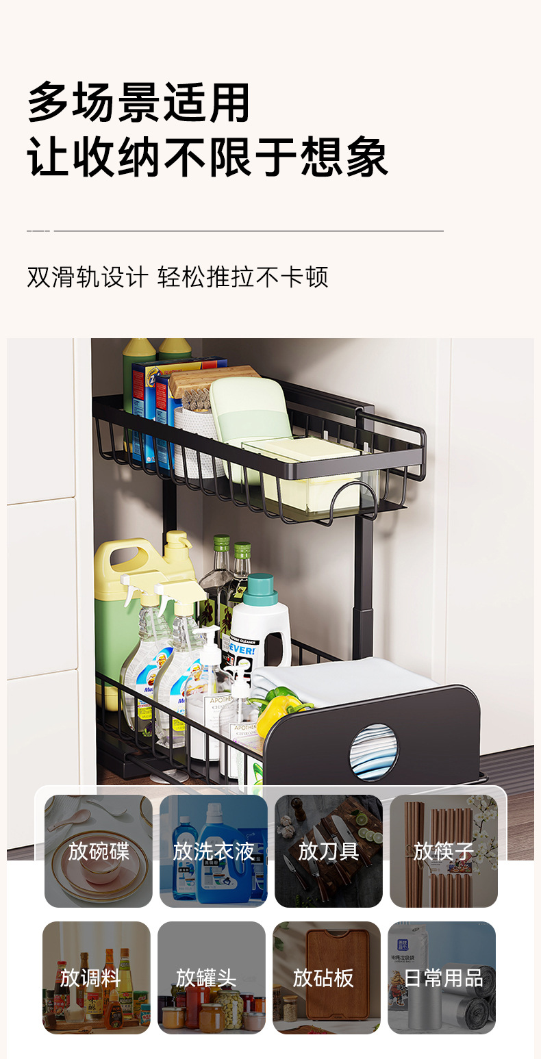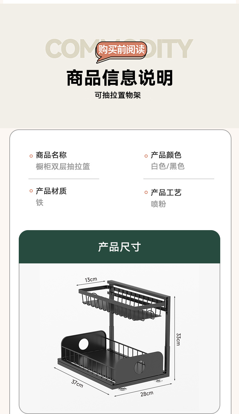 주방 싱크대 아래 맞춤형 수납 선반, 조절 가능한 욕실 바구니, 철제 풀아웃 캐비닛, 2층 수납 바구니
