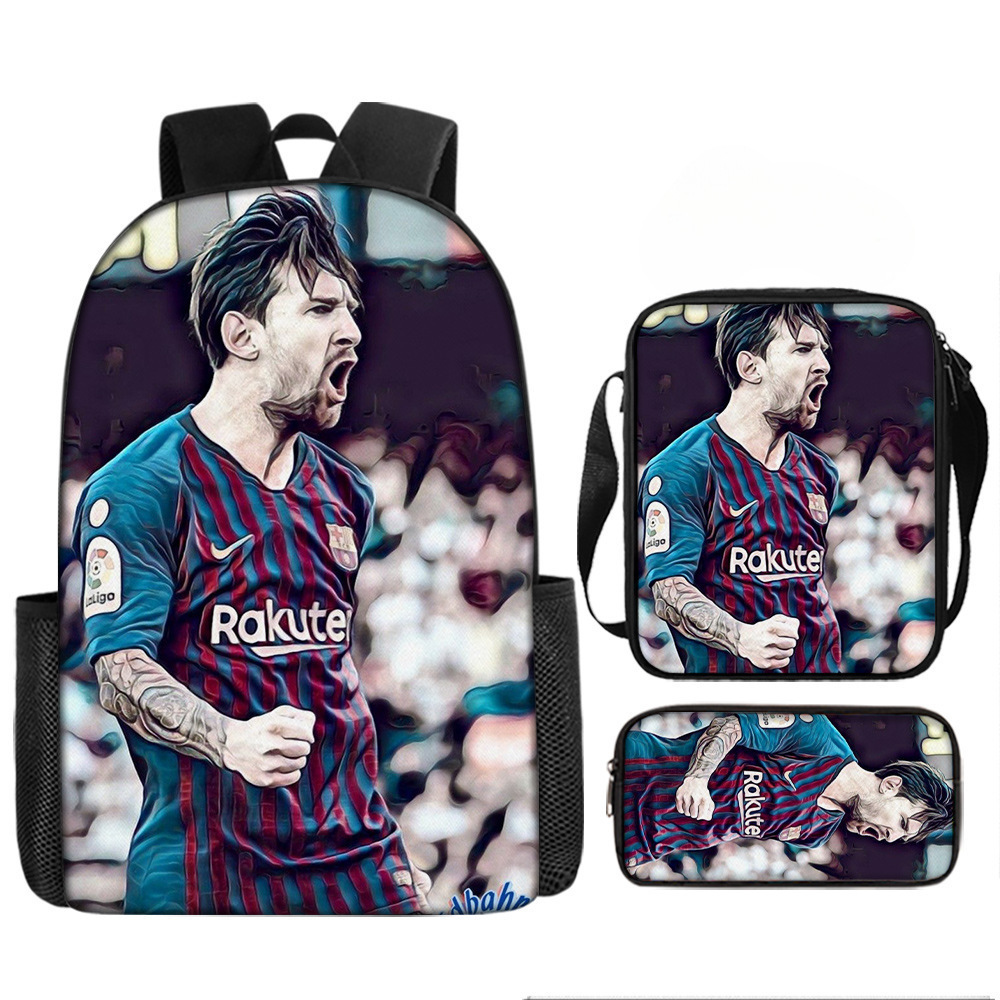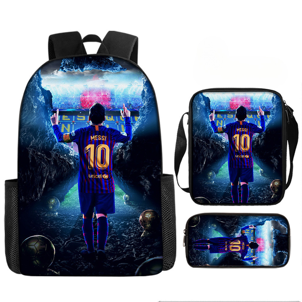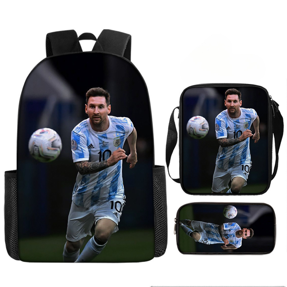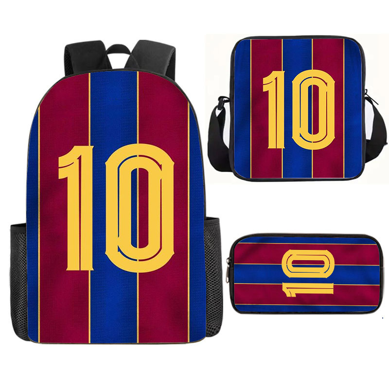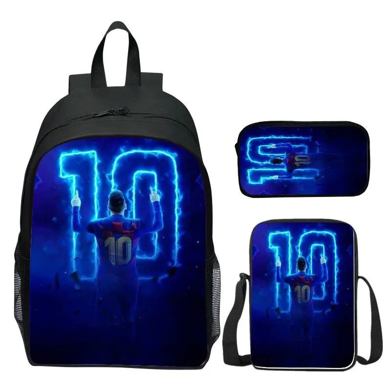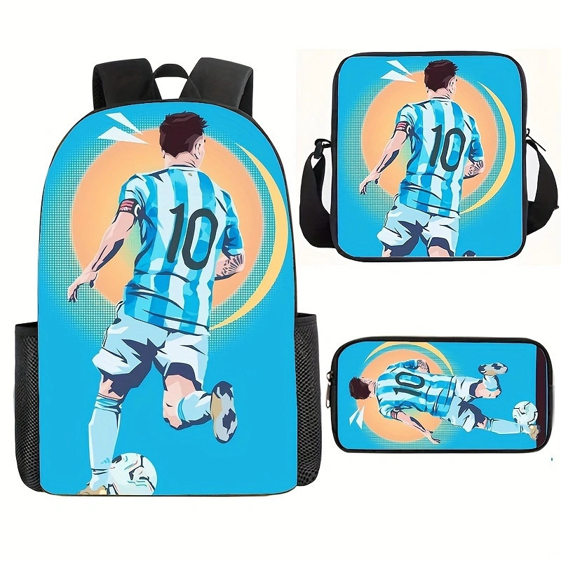 축구 메시 주변 배낭 인쇄 3 피스 세트 어린이 학교 가방 초등학교 배낭 점심 가방 연필 가방스토어 가기