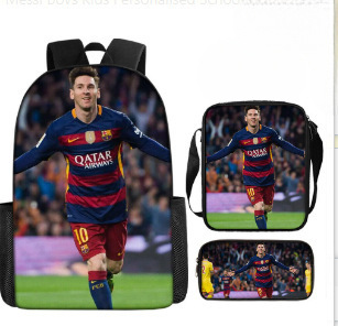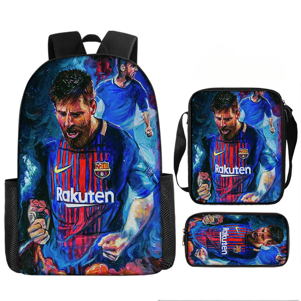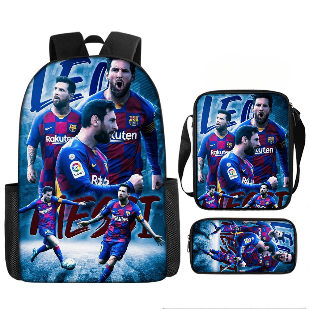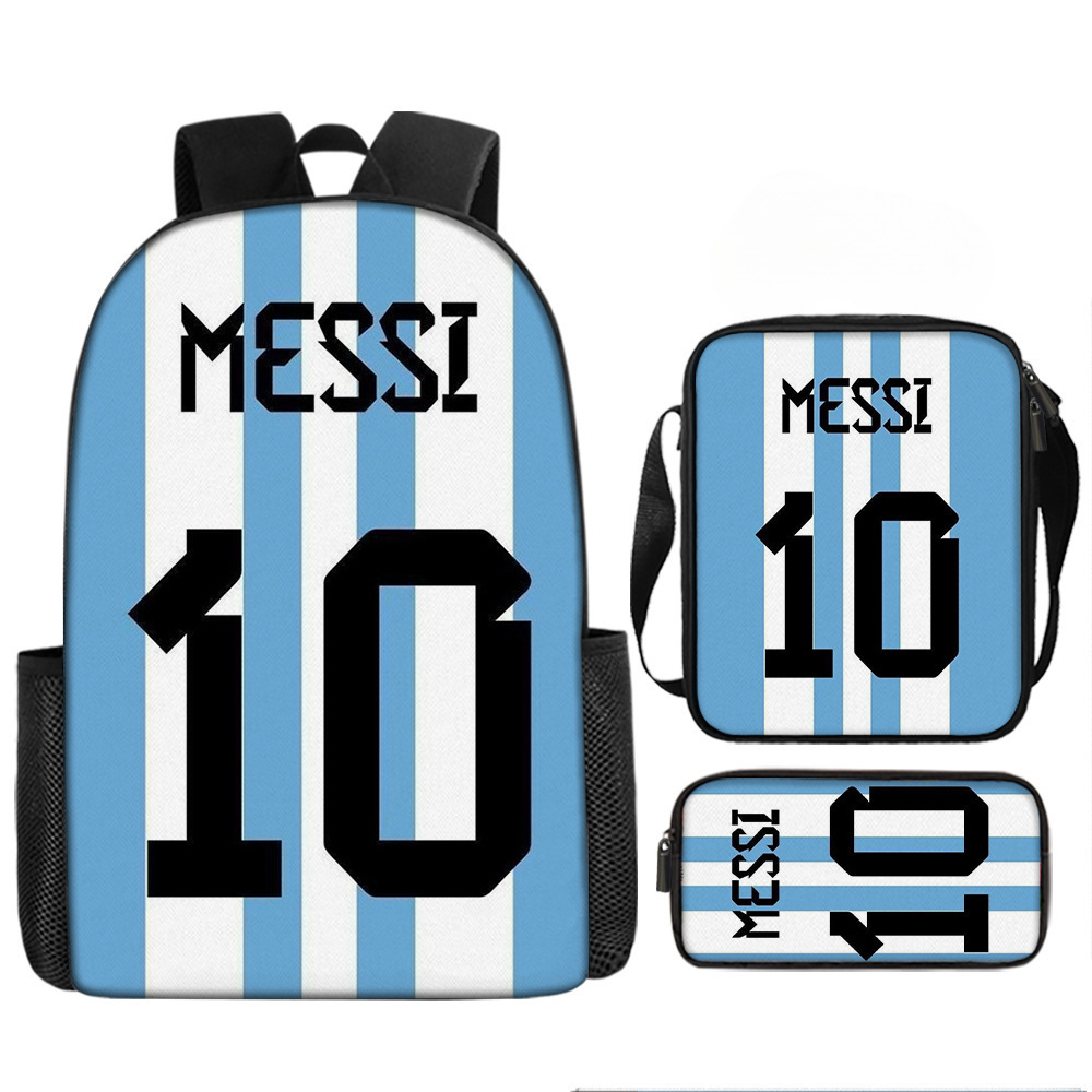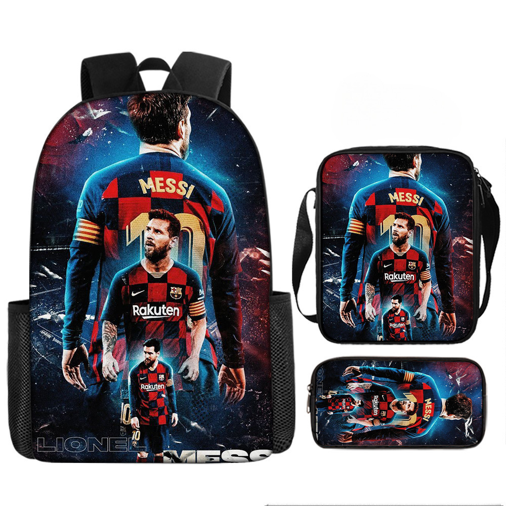 축구 메시 주변 배낭 인쇄 3 피스 세트 어린이 학교 가방 초등학교 배낭 점심 가방 연필 가방스토어 가기