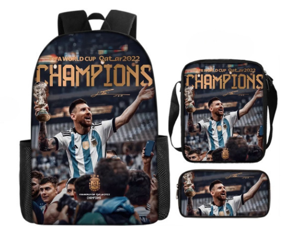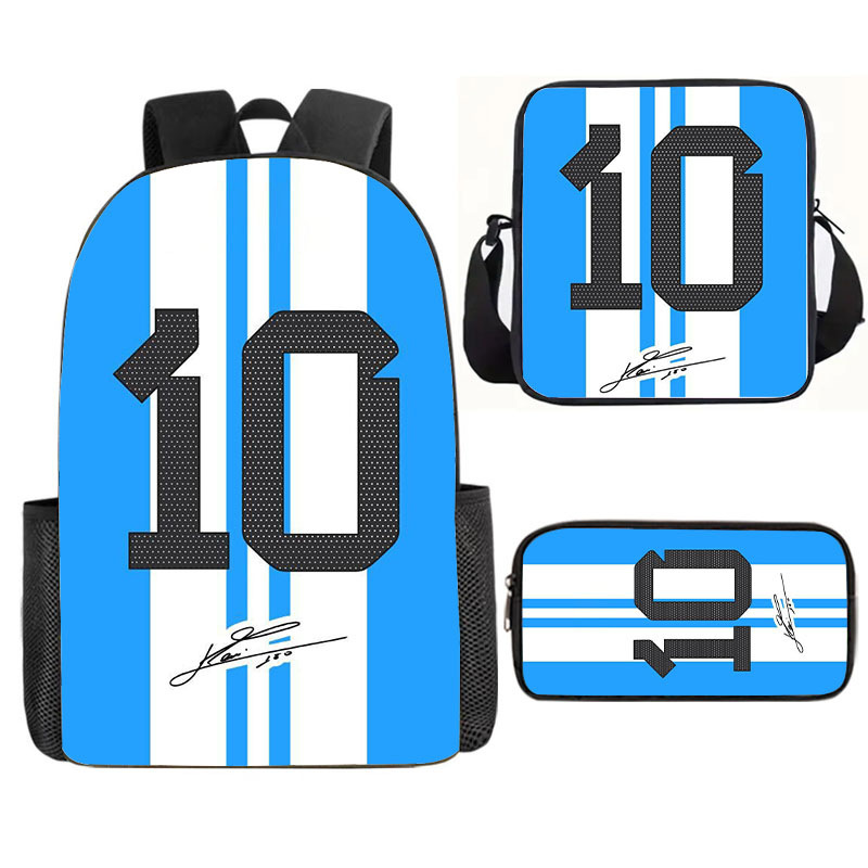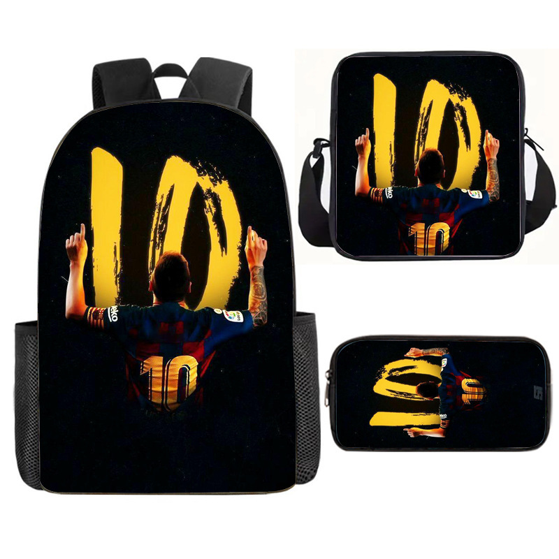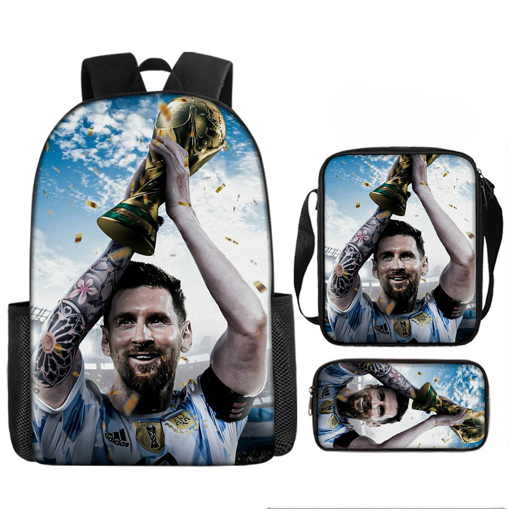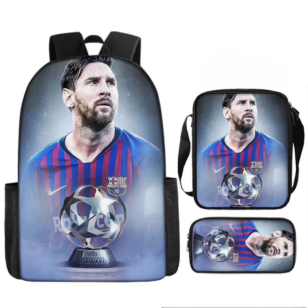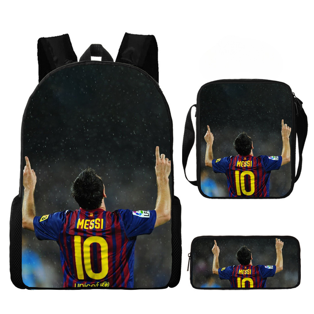 축구 메시 주변 배낭 인쇄 3 피스 세트 어린이 학교 가방 초등학교 배낭 점심 가방 연필 가방스토어 가기