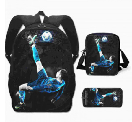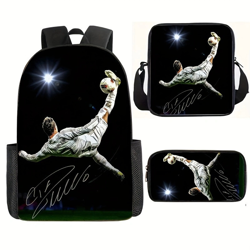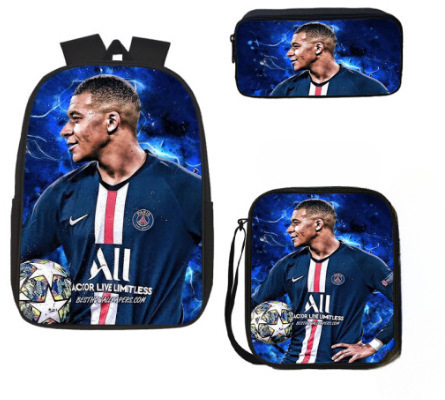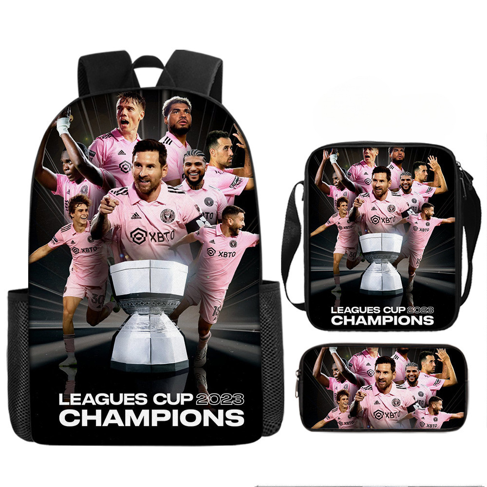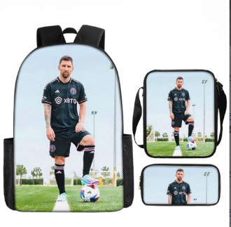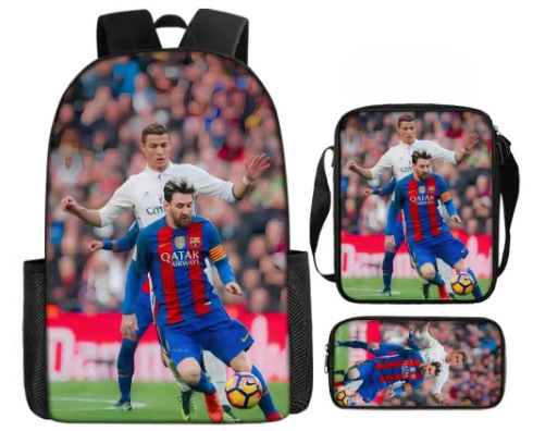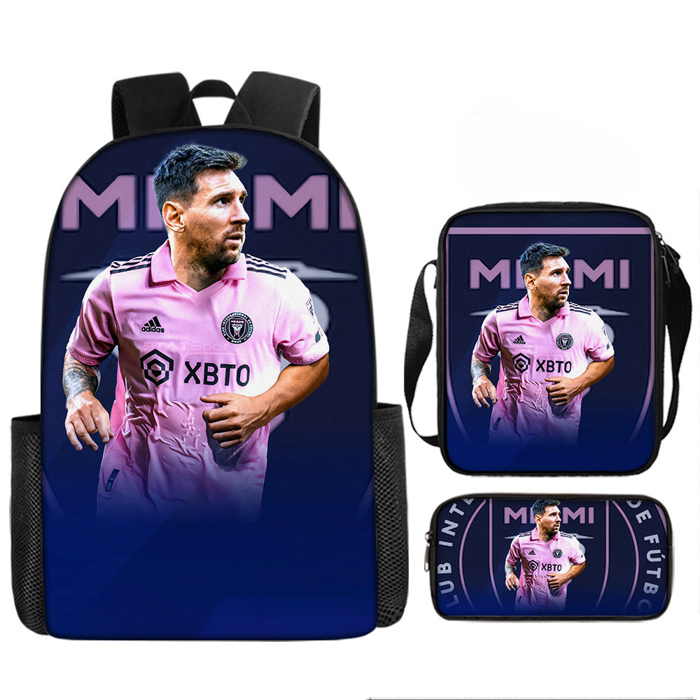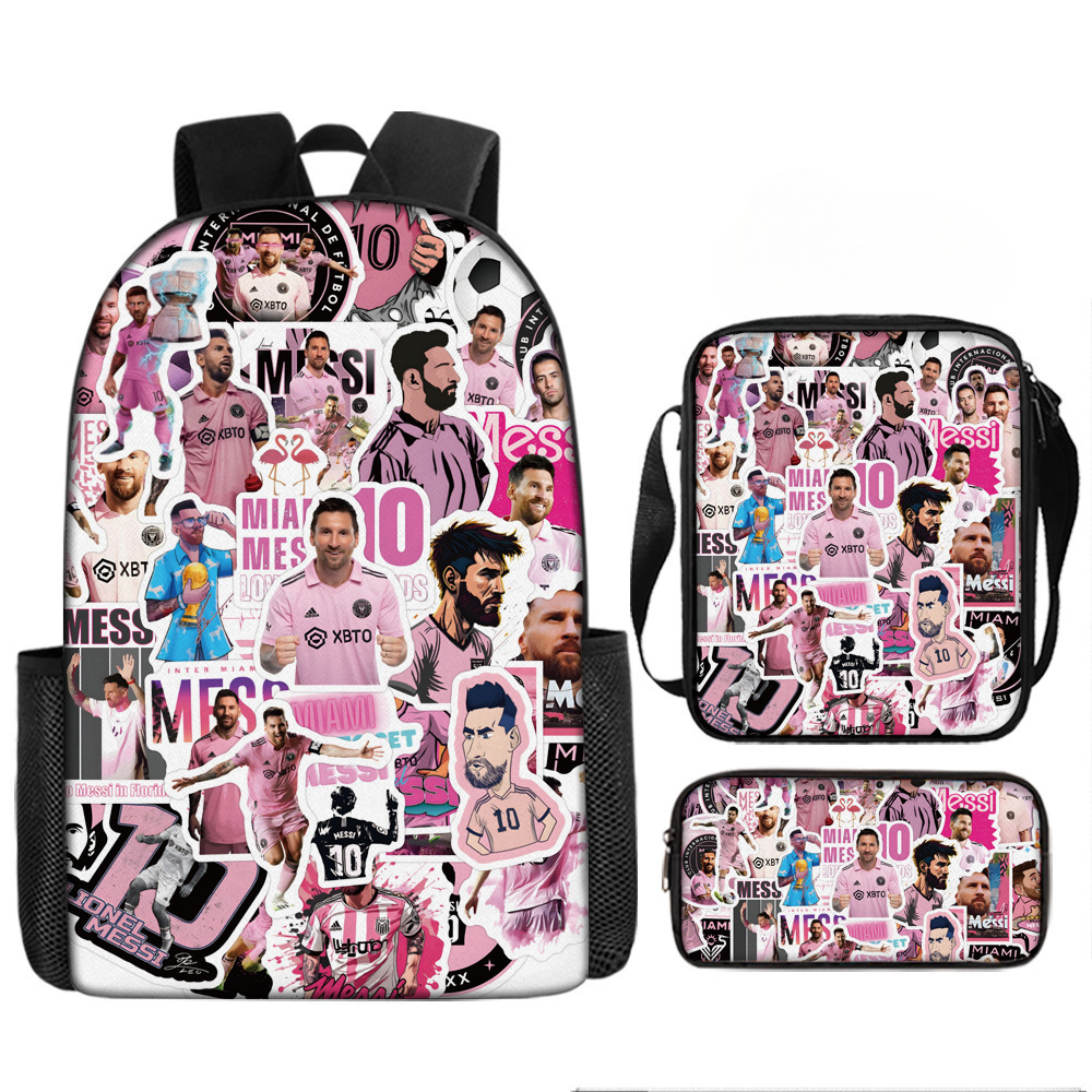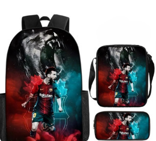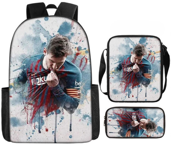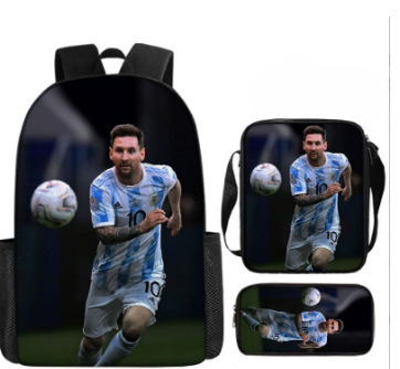 축구 메시 주변 배낭 인쇄 3 피스 세트 어린이 학교 가방 초등학교 배낭 점심 가방 연필 가방