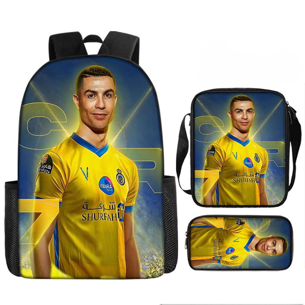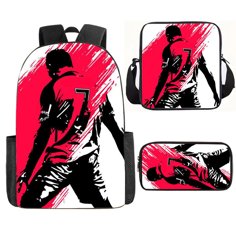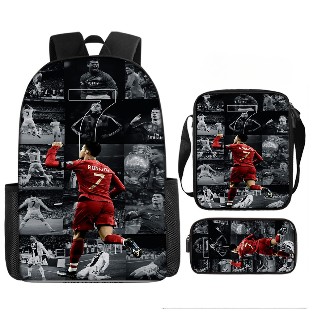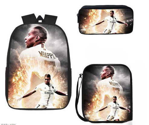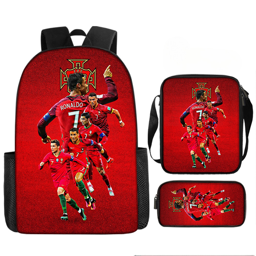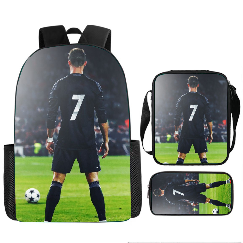 축구 메시 주변 배낭 인쇄 3 피스 세트 어린이 학교 가방 초등학교 배낭 점심 가방 연필 가방