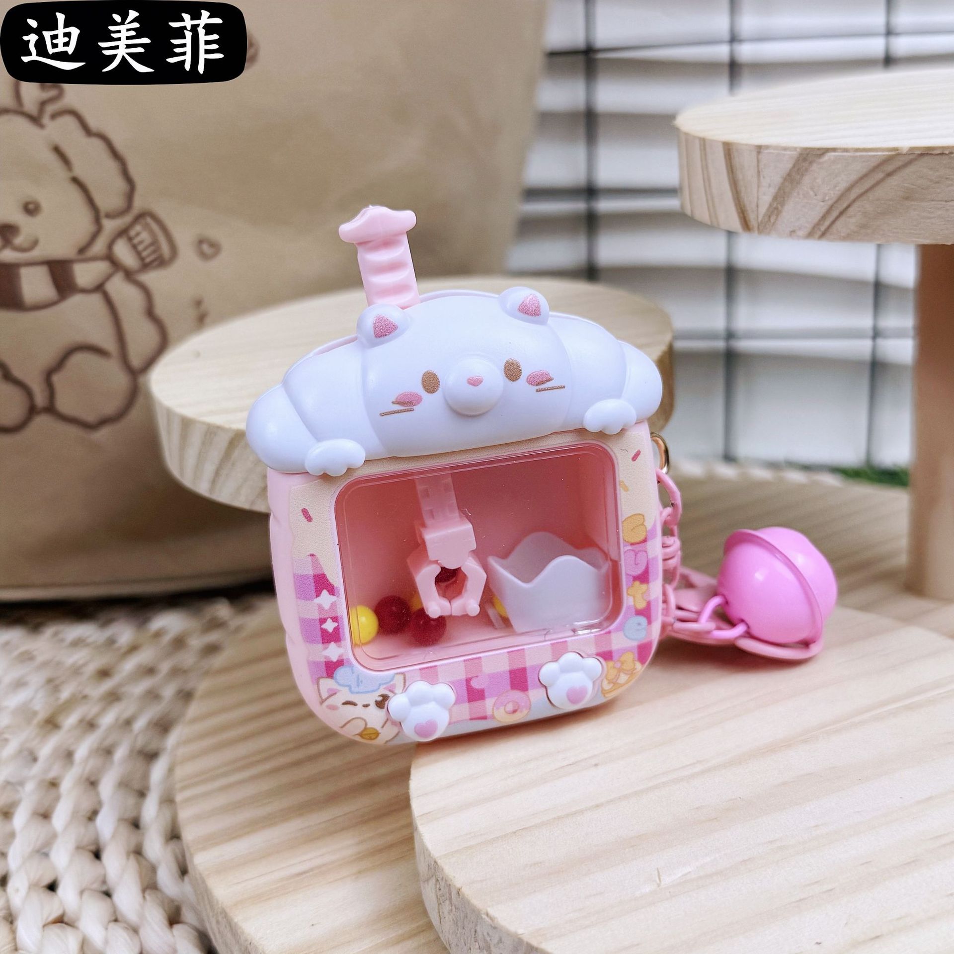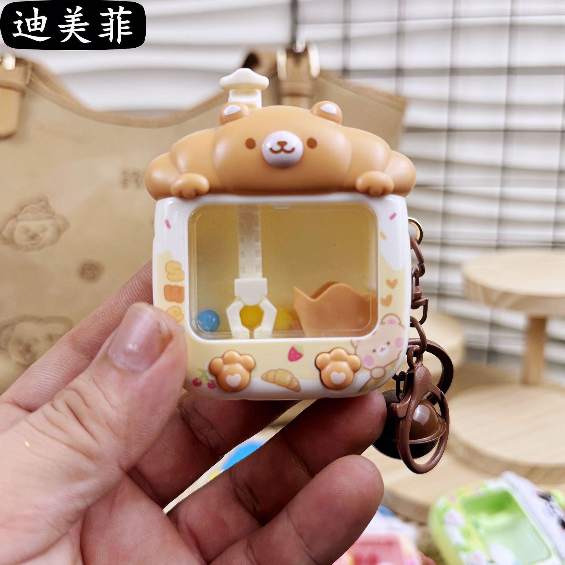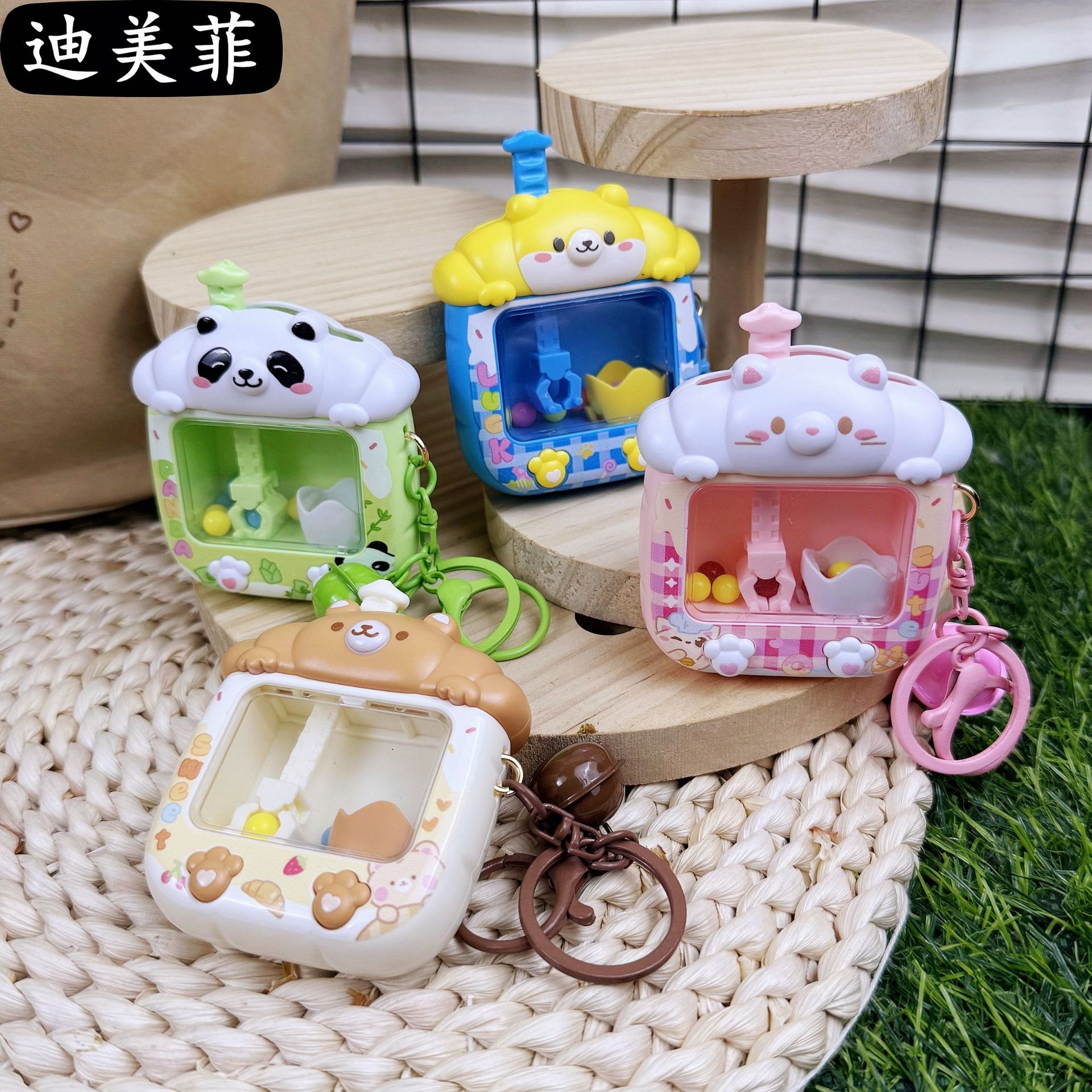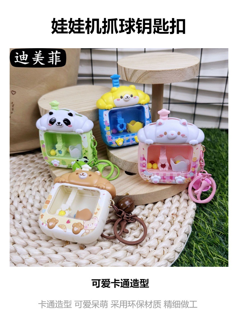 창조적 인 귀여운 토끼 곰 인형 기계 키 체인 잡기 공 기계 치료 감압 장난감 생일 선물 펜던트 선물스토어 가기