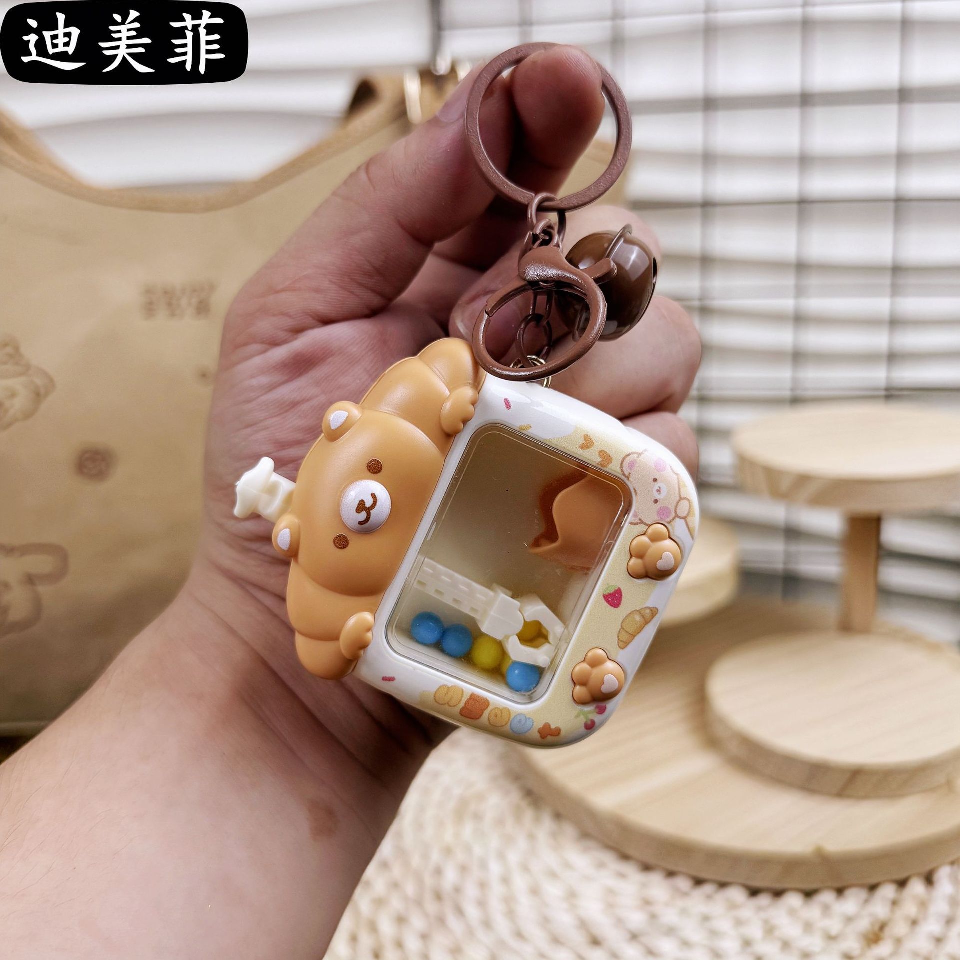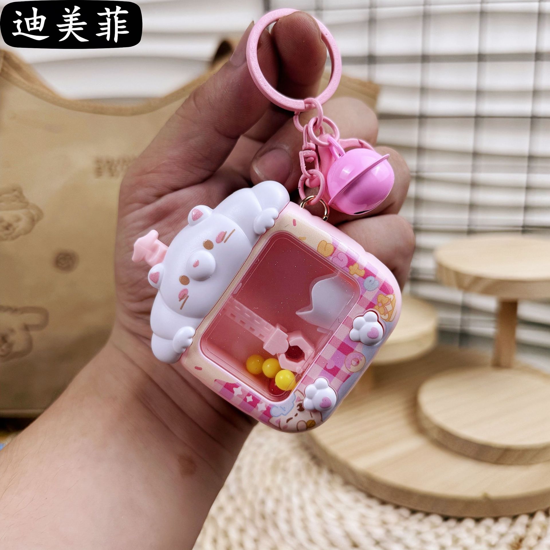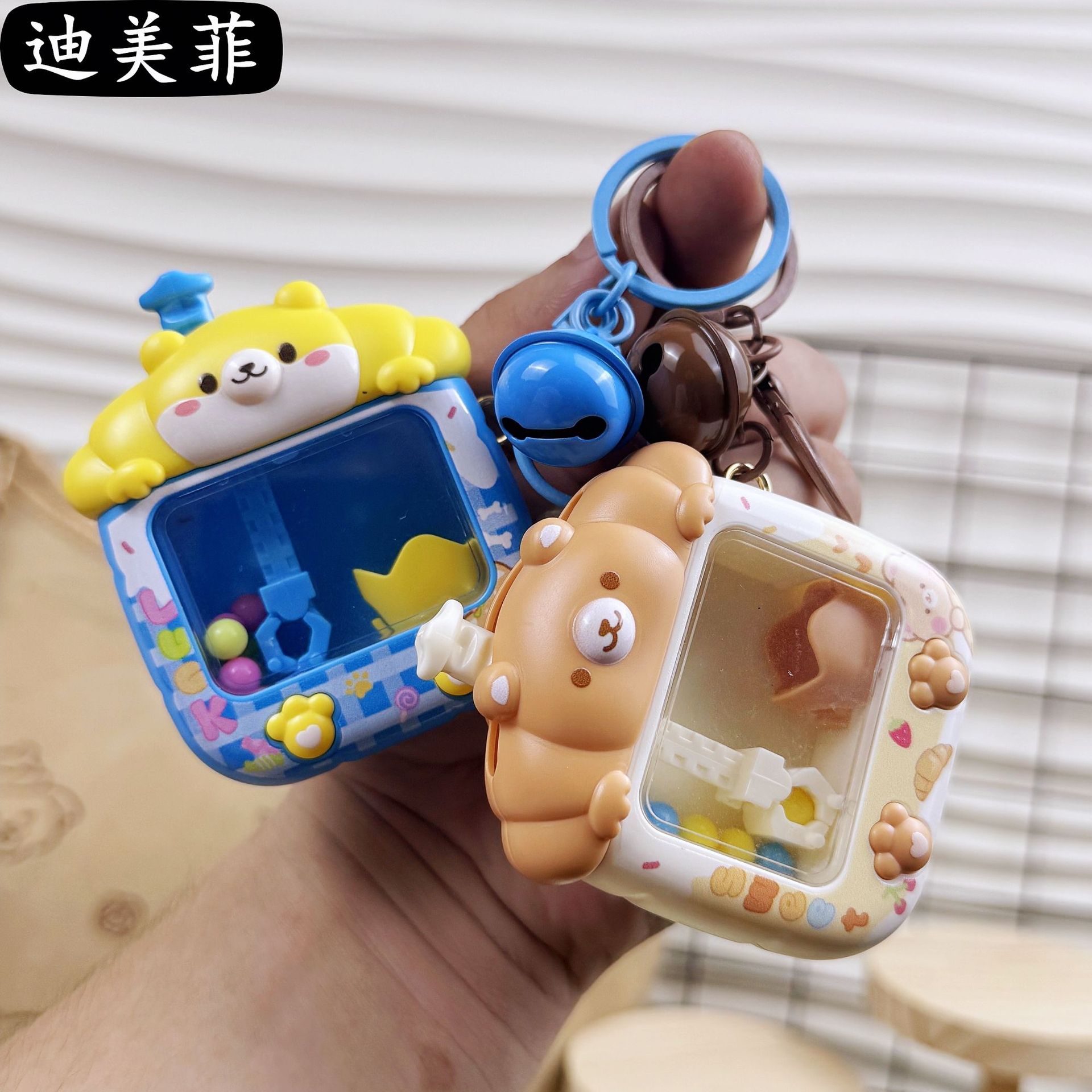 창조적 인 귀여운 토끼 곰 인형 기계 키 체인 잡기 공 기계 치료 감압 장난감 생일 선물 펜던트 선물스토어 가기