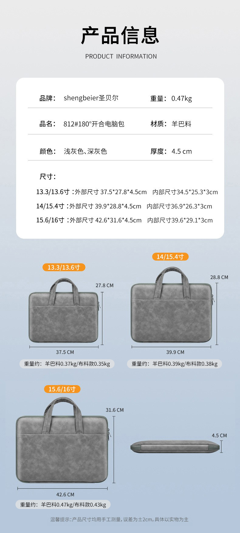 PU 가죽 비즈니스 노트북 가방 16inch 대용량 완전 개방형 방수 및 충격 방지 노트북 서류 가방