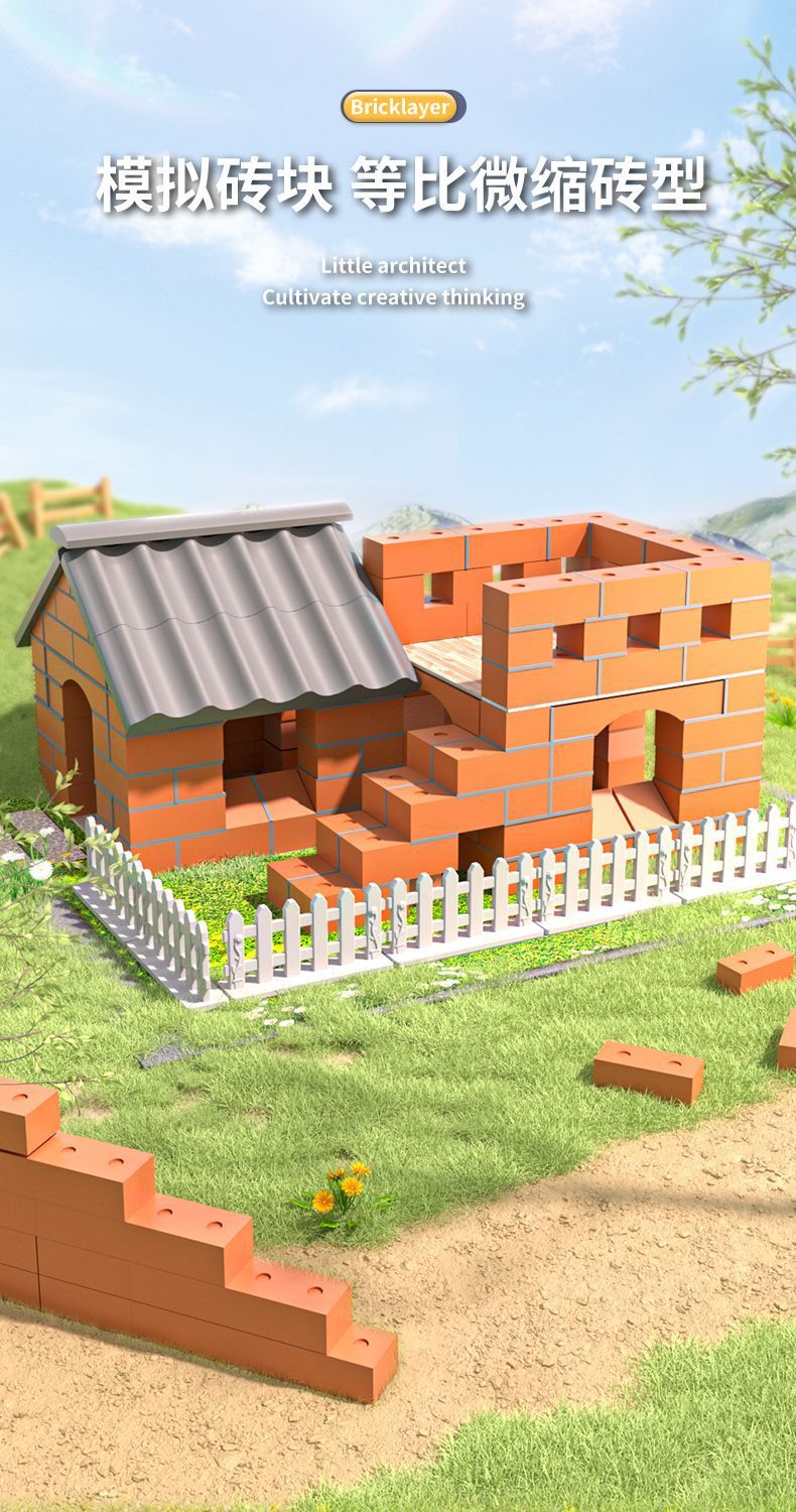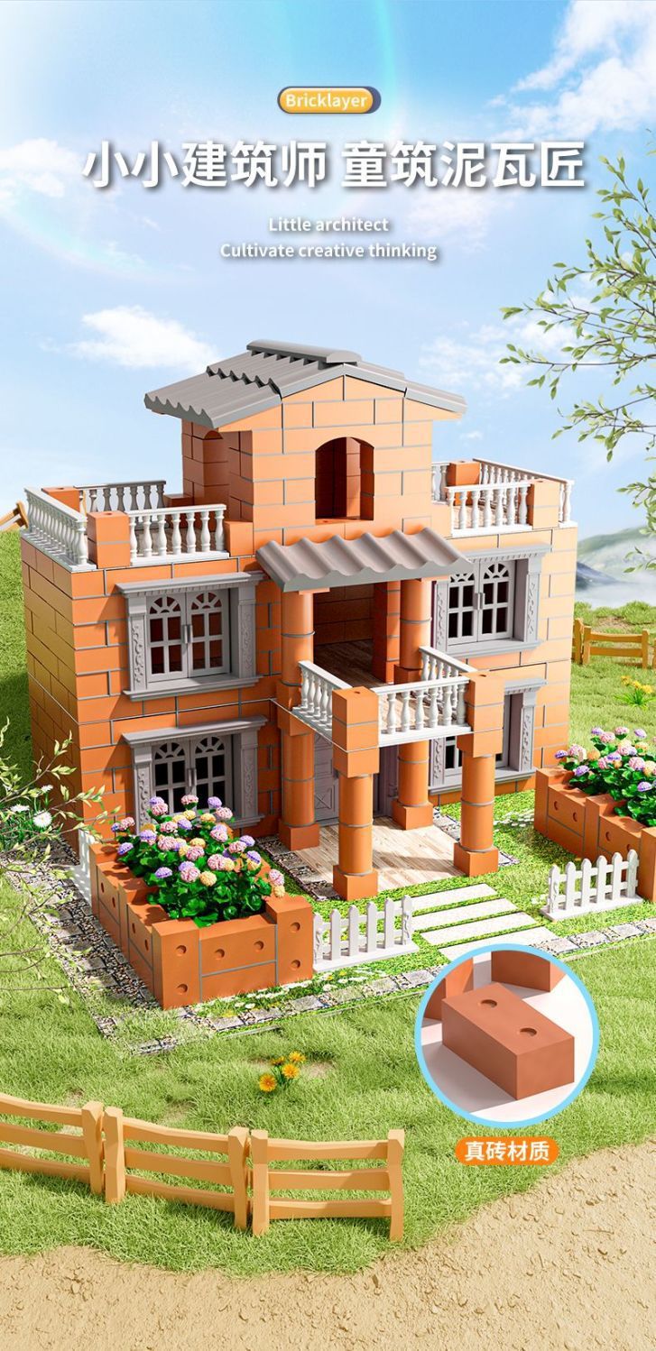 작은 벽돌공 어린이 DIY 수제 오두막 시뮬레이션 건물 실제 벽돌 미니 하우스 빌라 모델 장난감