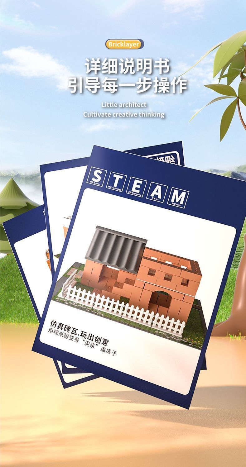 작은 벽돌공 어린이 DIY 수제 오두막 시뮬레이션 건물 실제 벽돌 미니 하우스 빌라 모델 장난감스토어 가기