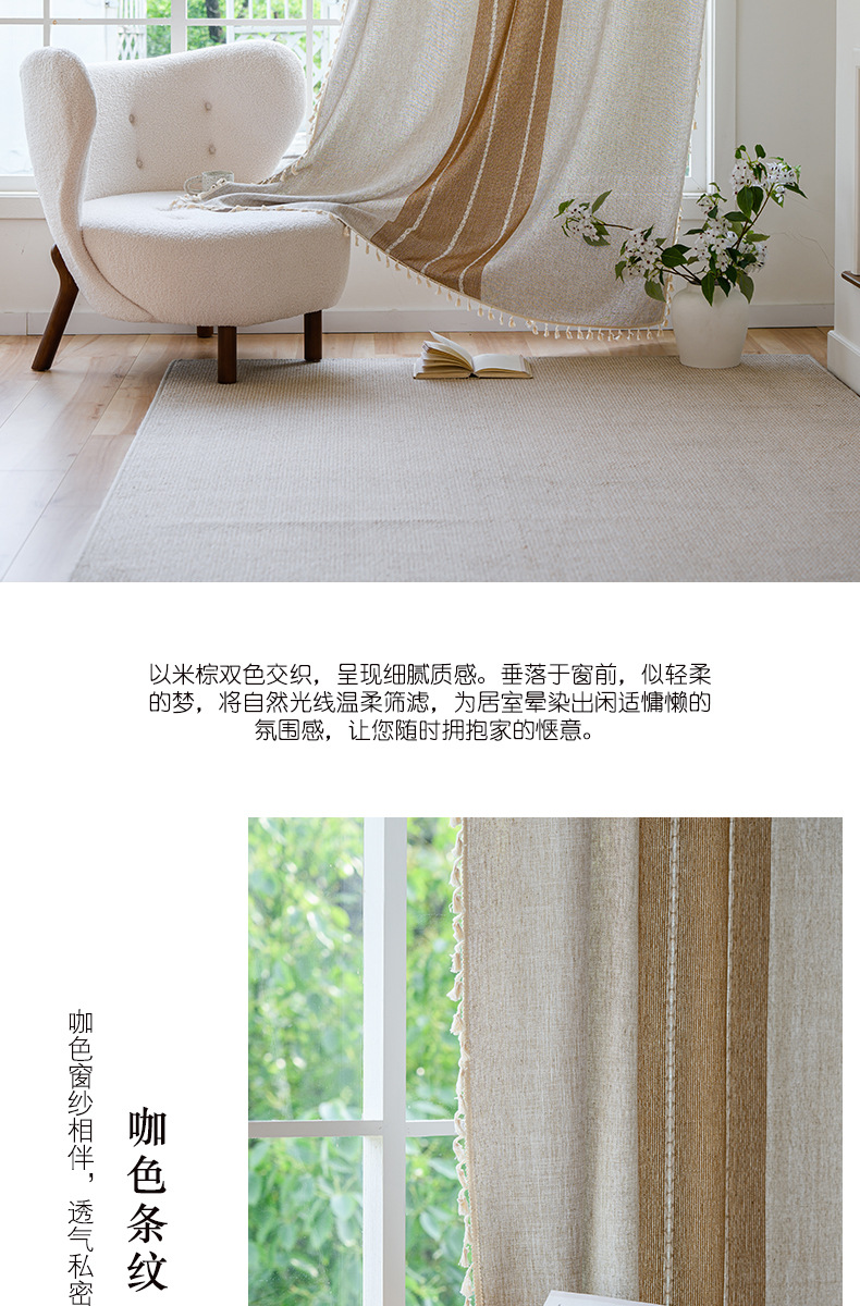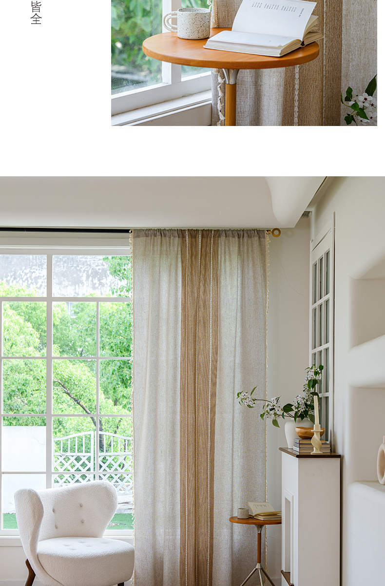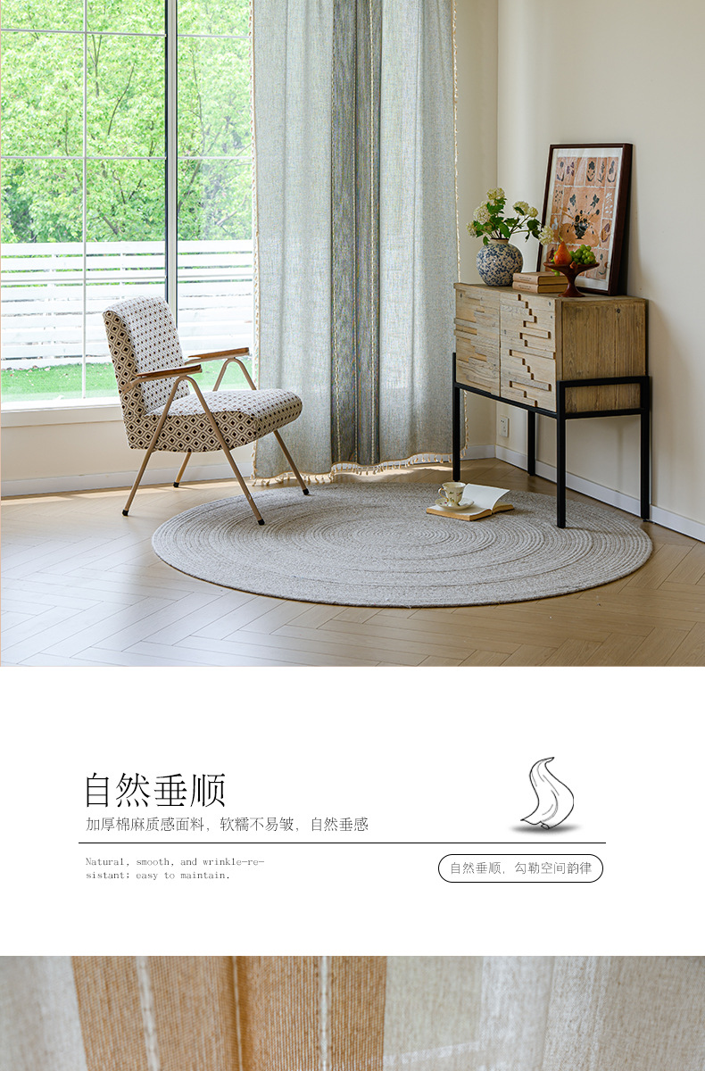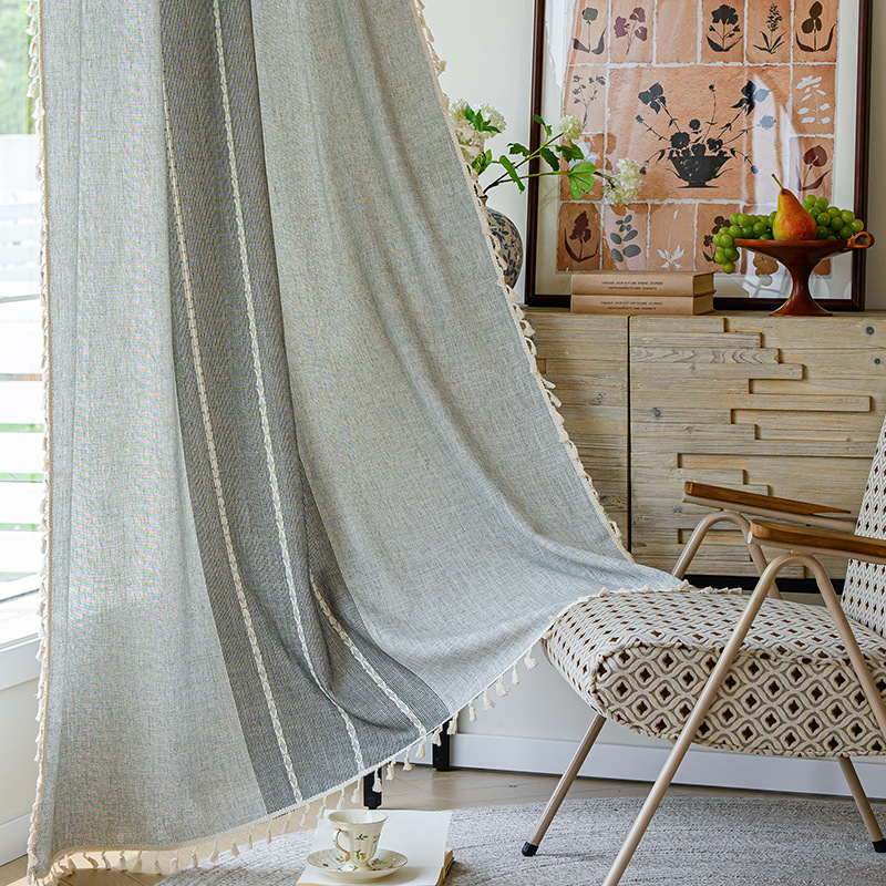 국경을 넘나드는 인기 있는 일반 커튼 일본식 심플한 면 및 린넨 커튼 거실 침실 주방 칸막이 커튼 반 차광 커튼스토어 가기