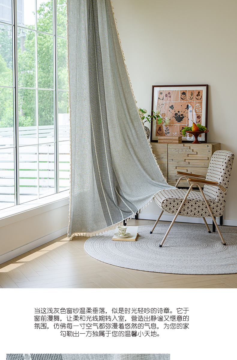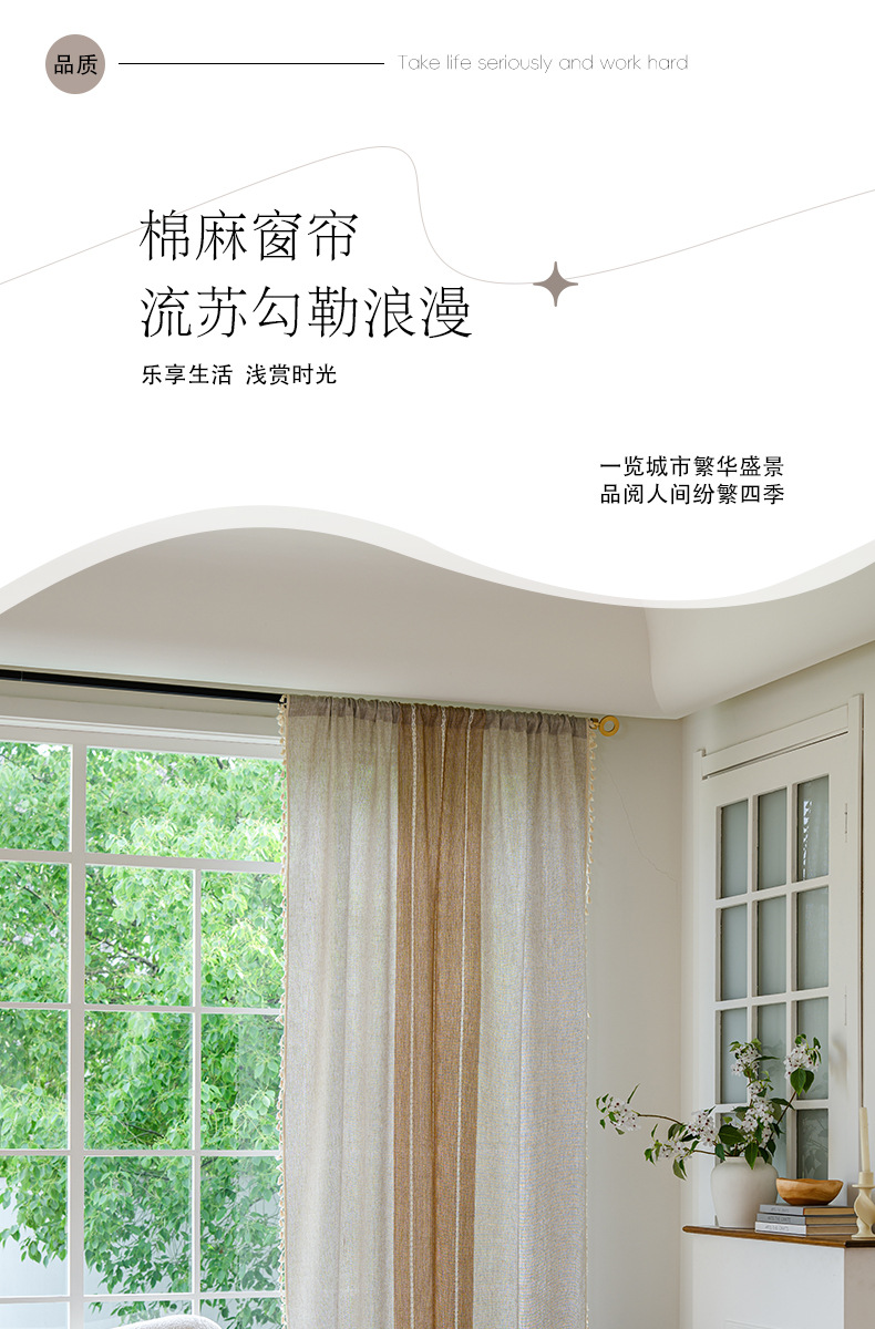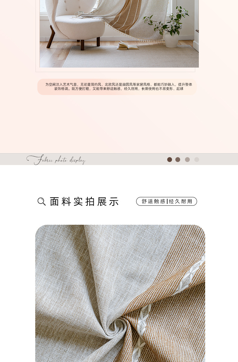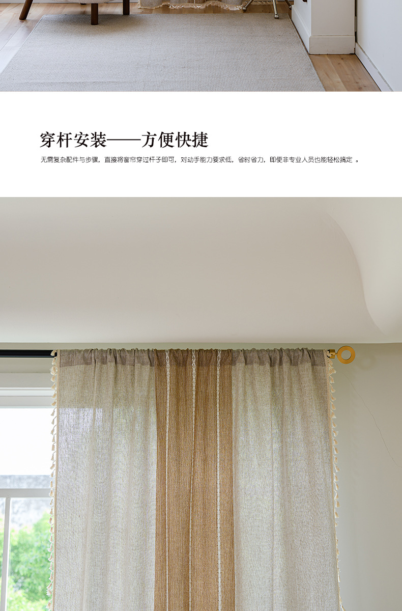 국경을 넘나드는 인기 있는 일반 커튼 일본식 심플한 면 및 린넨 커튼 거실 침실 주방 칸막이 커튼 반 차광 커튼스토어 가기