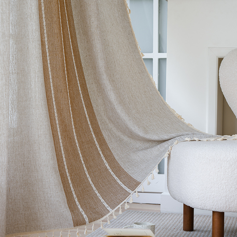 국경을 넘나드는 인기 있는 일반 커튼 일본식 심플한 면 및 린넨 커튼 거실 침실 주방 칸막이 커튼 반 차광 커튼