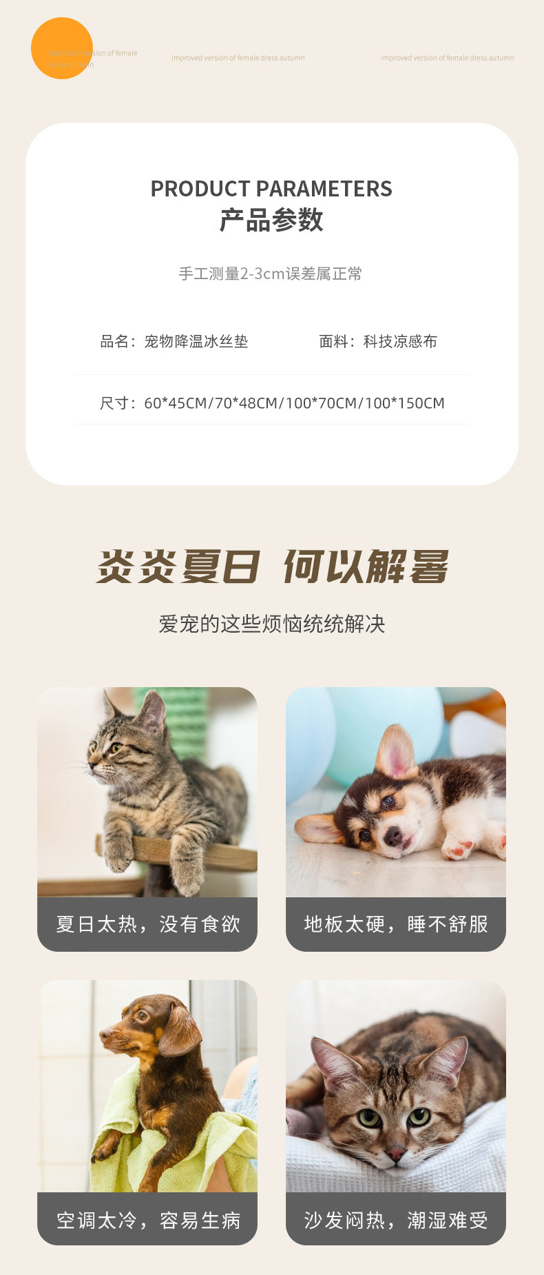 여름 고양이와 개 소파 쿠션 미끄럼 방지 애완 동물 얼음 쿠션 부드러운 얼음 실크 차가운 둥지 쿠션 개 매트 냉각 수면 매트스토어 가기