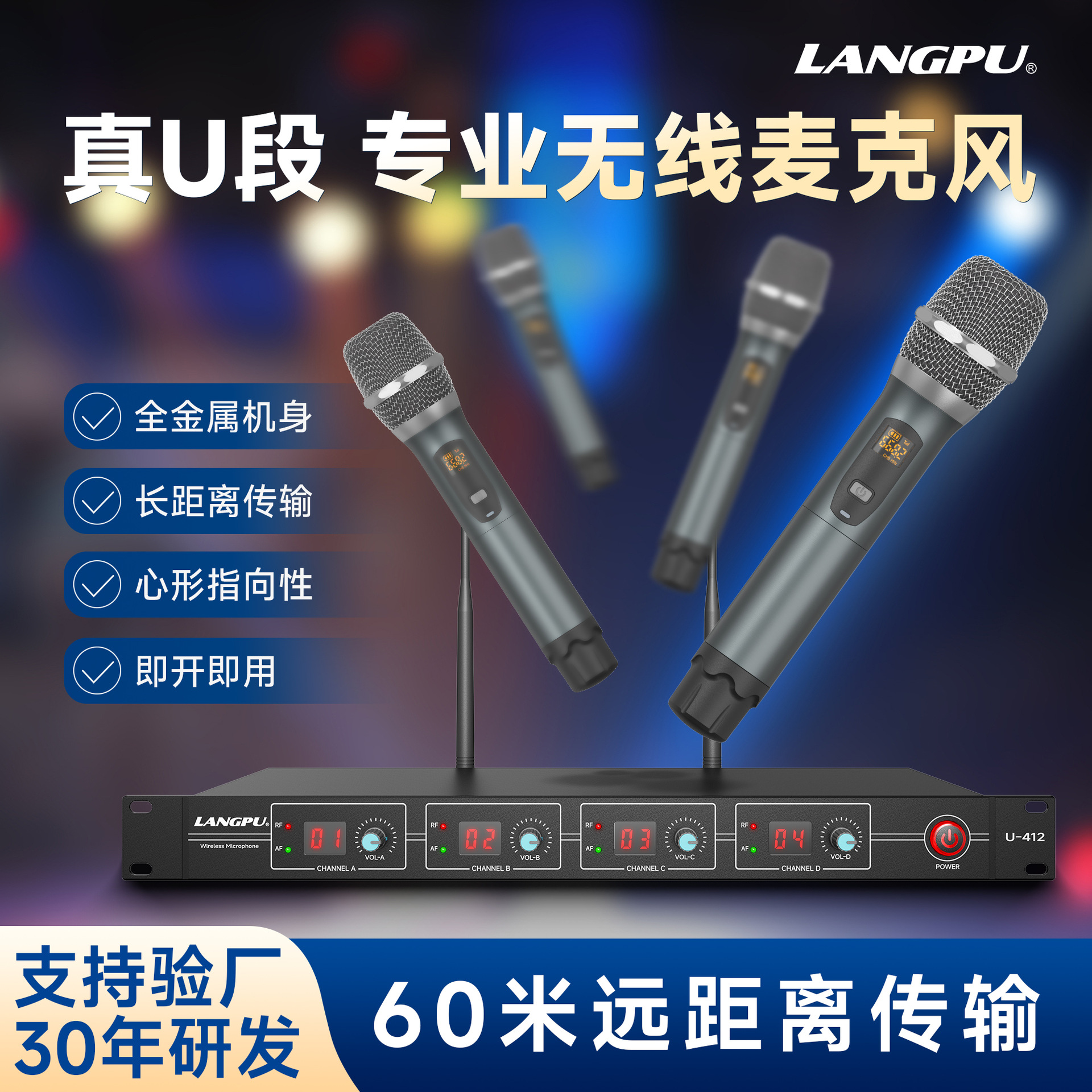 무선 마이크 1대4 KTV 무대 노래 공연 결혼식 진행 U파 고정 주파수 핸드헬드 다이나믹 마이크