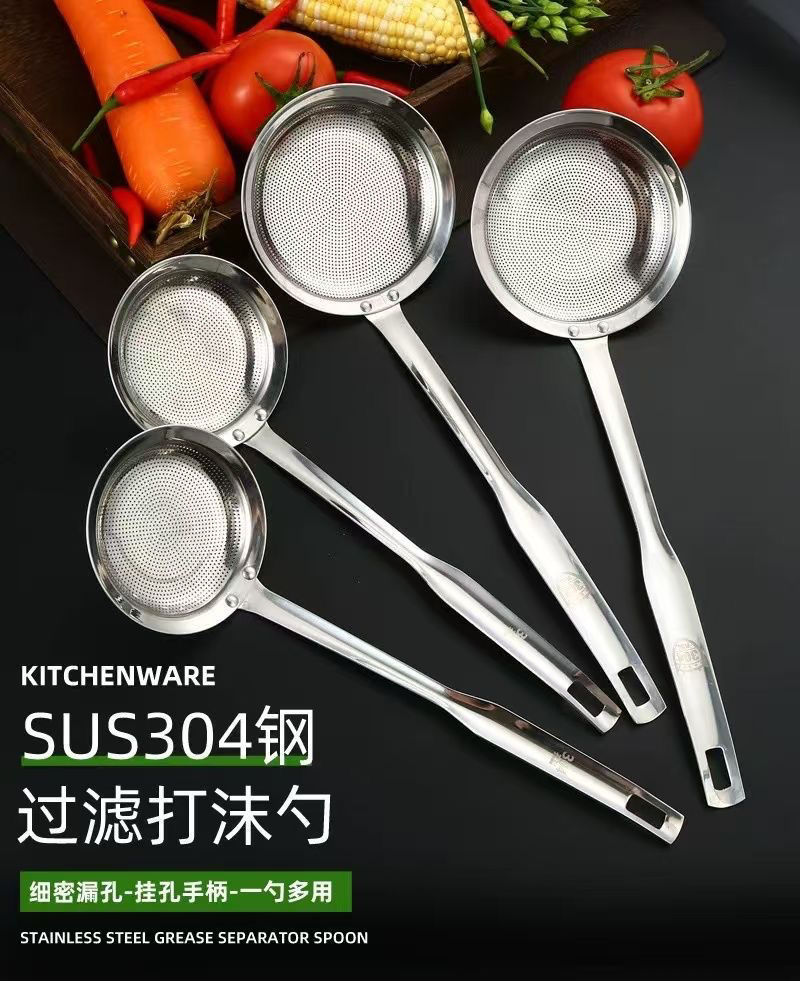 304 스테인레스 스틸 거품 제거 스푼 식품 등급 다기능 거품 필터 가정용 주방 올인원 오일 스키밍 도구스토어 가기