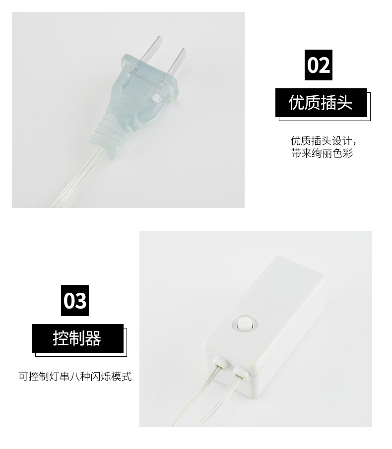 产品规格:3*1m10条垂挂180颗灯珠,3*2m10条垂挂400颗灯珠,6*1m20条垂挂400颗灯珠,6*2m20条垂挂挂800颗灯珠