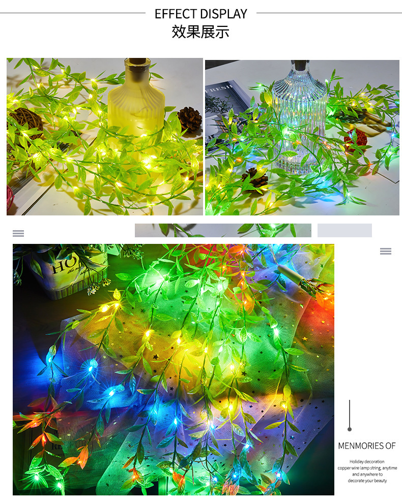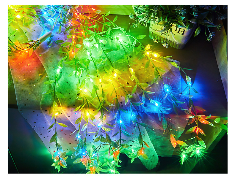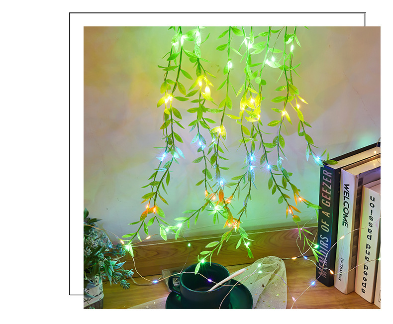 국경 간 새로운 led 태양 갈대 잎 빛 구리 와이어 문자열 빛 침실 장식 휴일 분위기 빛 커튼 빛스토어 가기