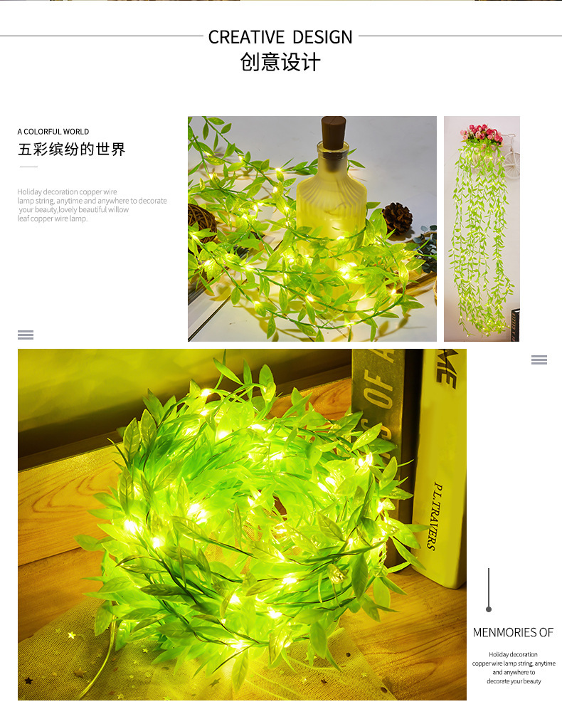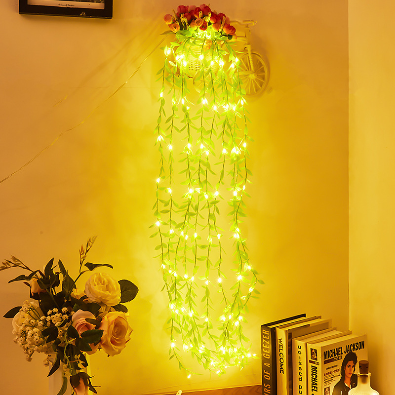 국경 간 새로운 led 태양 갈대 잎 빛 구리 와이어 문자열 빛 침실 장식 휴일 분위기 빛 커튼 빛