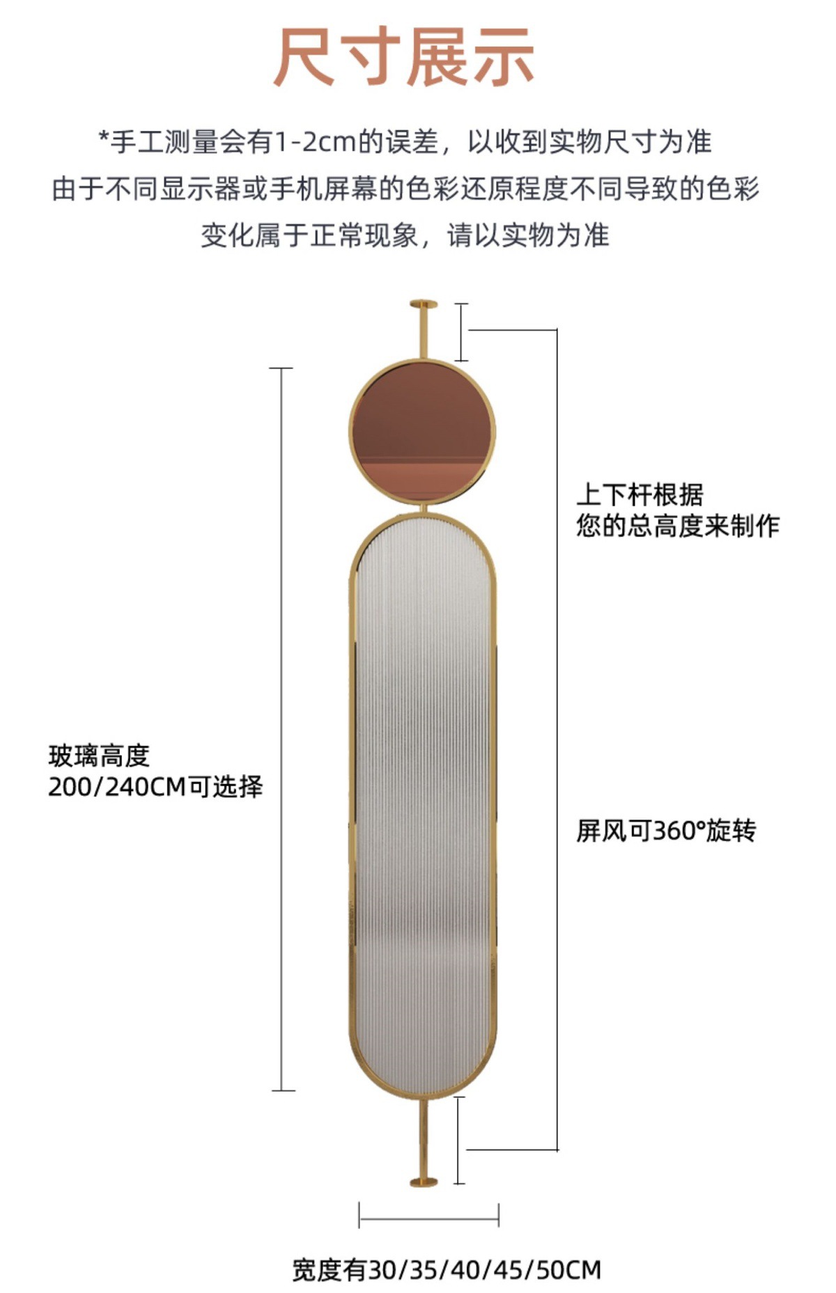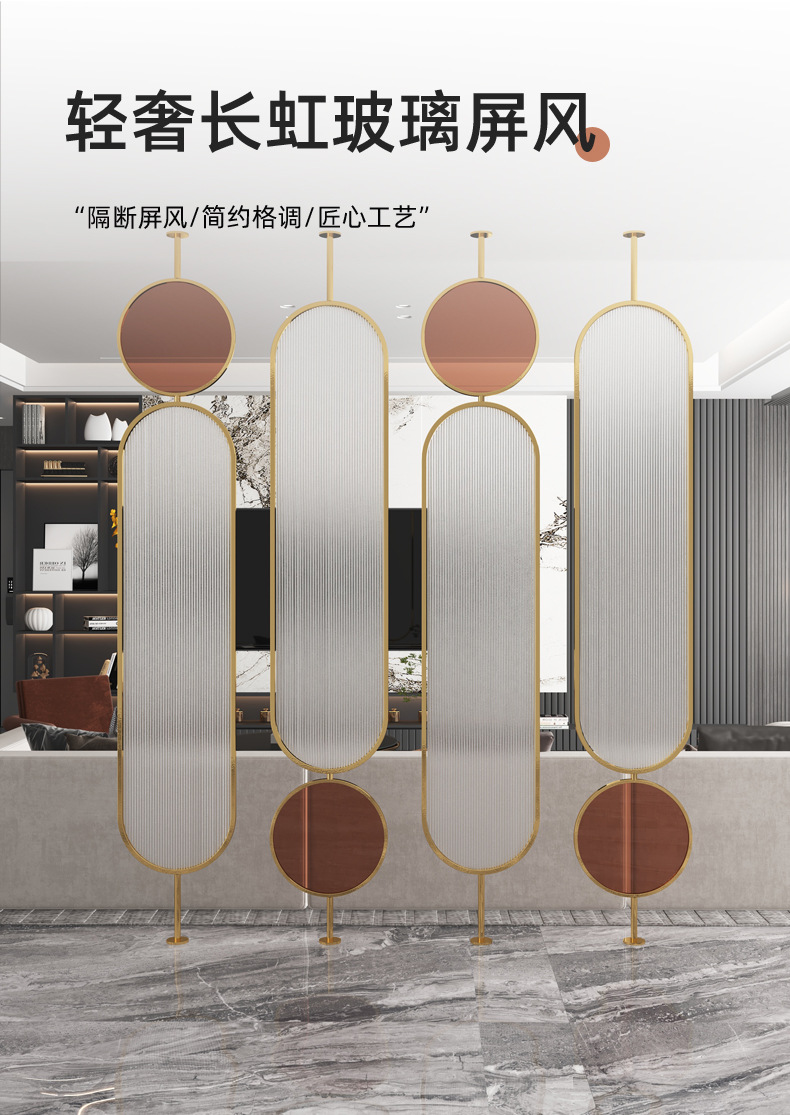 Baitie 라이트 럭셔리 Changhong 유리 칸막이 벽 사무실 장식 입구 거실 간단한 스테인레스 스틸 회전식 스크린