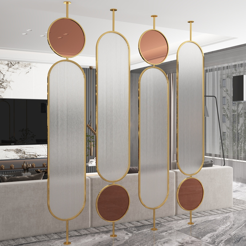 Baitie 라이트 럭셔리 Changhong 유리 칸막이 벽 사무실 장식 입구 거실 간단한 스테인레스 스틸 회전식 스크린스토어 가기