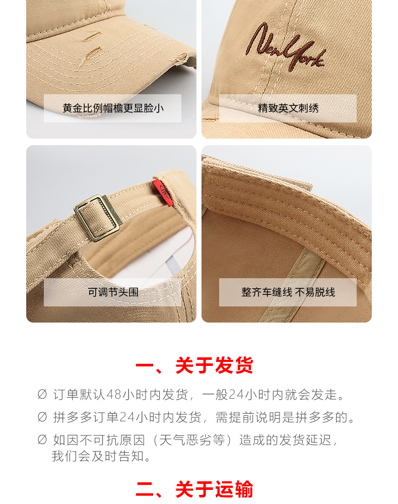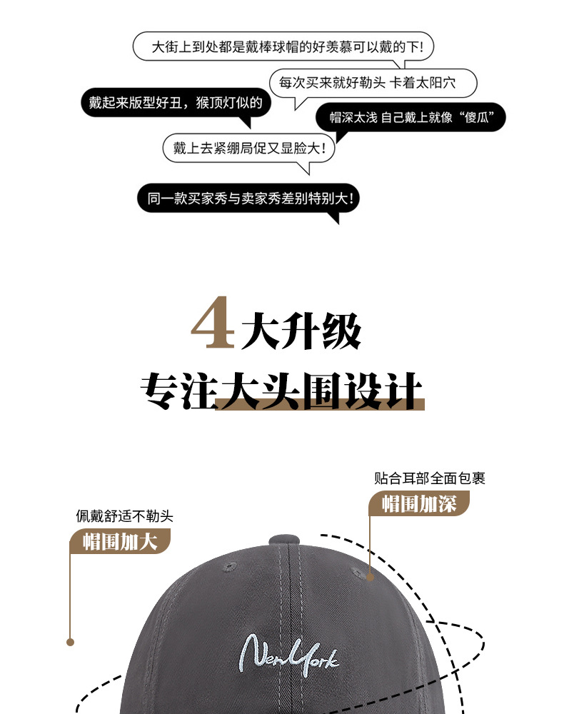 머리둘레가 큰 여성용 신형 야구모자, 얼굴이 보이는 작은 모자, 자외선 차단, 챙이 넓은 챙이 있는 모자, 남성용 여름 카키색 모자스토어 가기