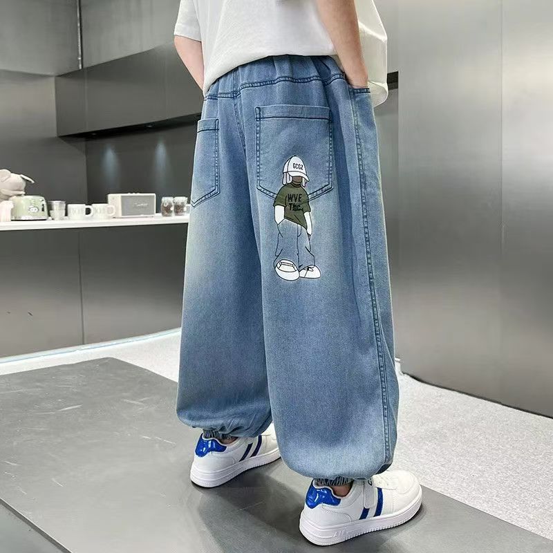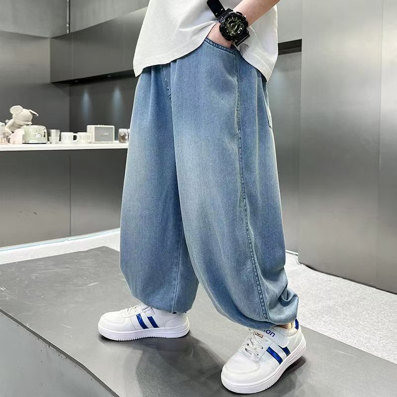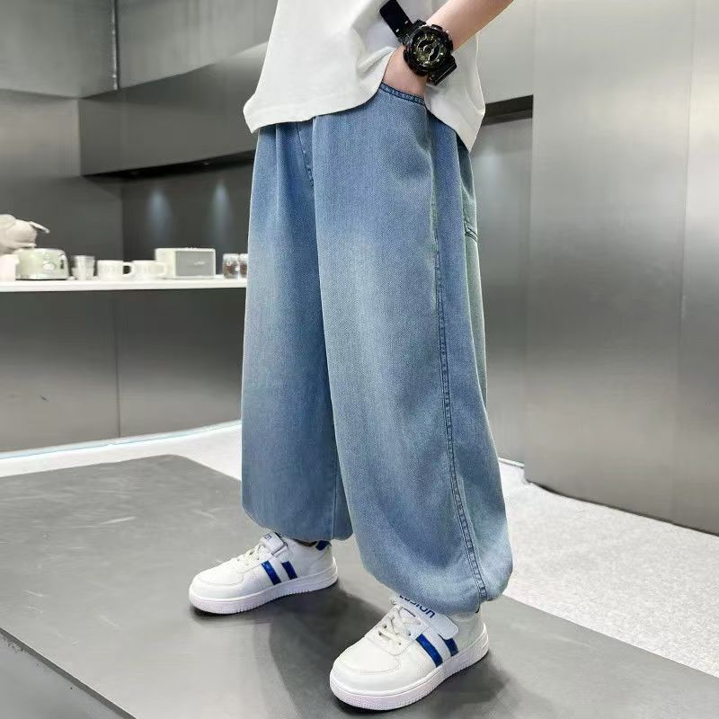 소년 모기 방지 바지 여름 얇은 2025 새로운 어린이 여름 멋진 데님 유행 아기 여름 바지 도매
