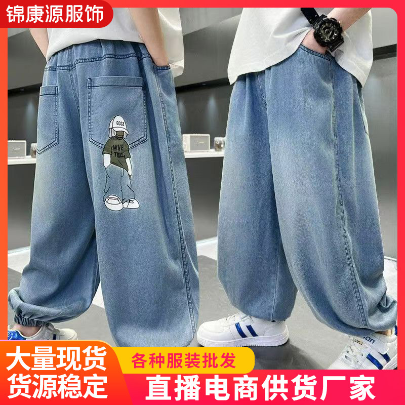 소년 모기 방지 바지 여름 얇은 2025 새로운 어린이 여름 멋진 데님 유행 아기 여름 바지 도매스토어 가기