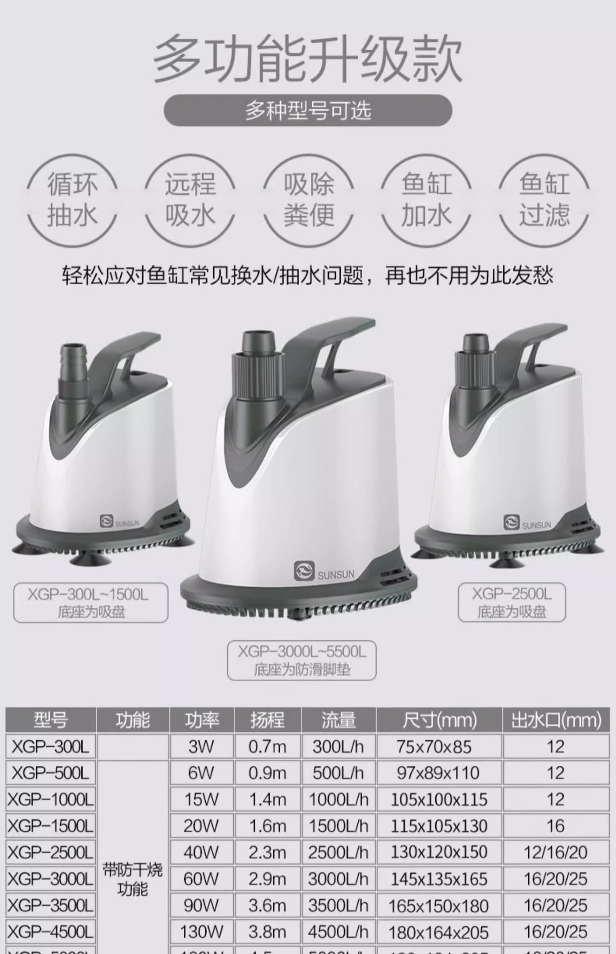 XGP 어항 펌프 순환 펌프 바닥 흡입 수중 펌프 어류 배설물 필터 펌프 가정용 펌프 수족관 펌프