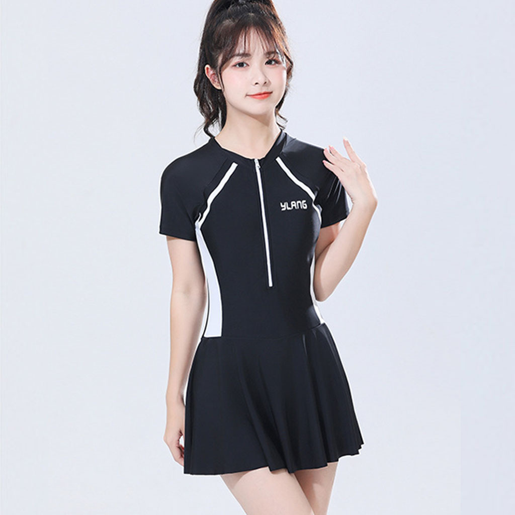 • 흑백 원피스 슬림핏 스커트형 수영복 (브라캡 내장)