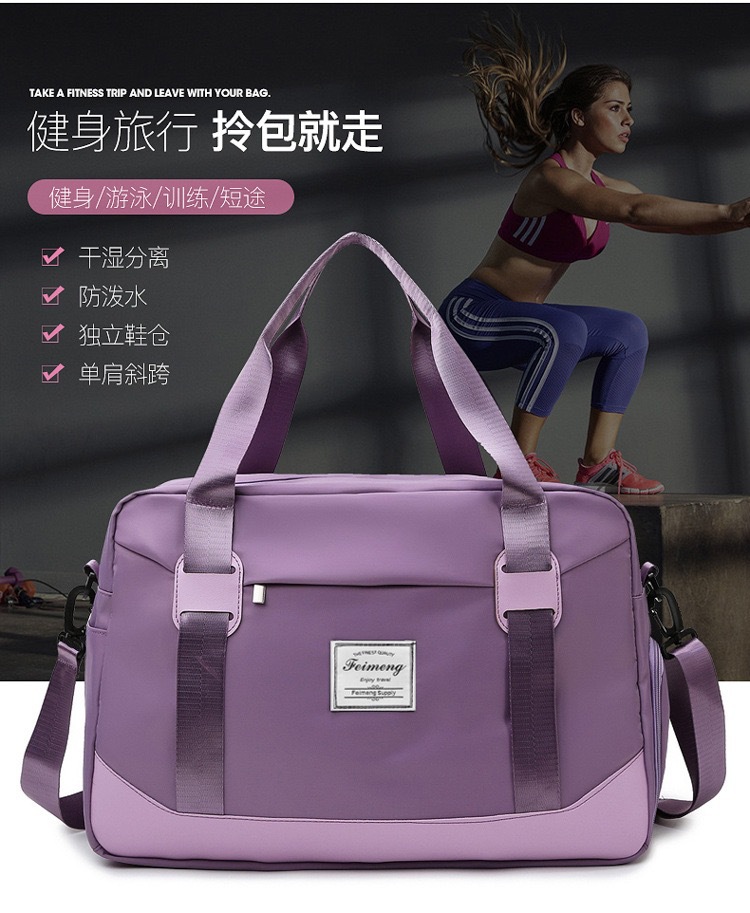 여성을 위한 새로운 스타일의 스포츠 및 피트니스 가방, 신발 위치가 있는 습식 및 건식 분리, 휴대용 어깨 여행 가방 커버, 트롤리 수하물 가방