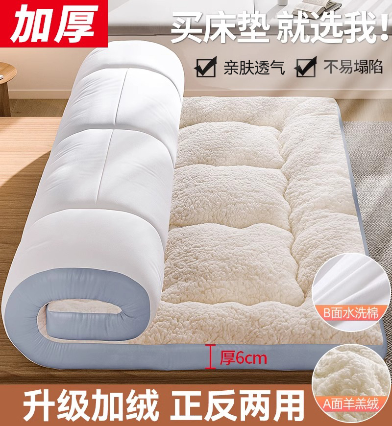 • 화이트 엣지 블루 벨벳 버전 [빠른 따뜻한 양가죽 업그레이드 온도 잠금] 6cm 소프트 매트리스