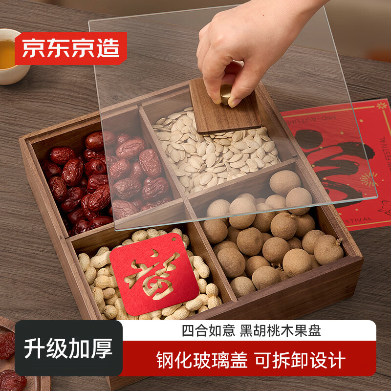 도쿄산 과일접시, 건과일 트레이, 스낵보관 유리접시 [원목 블랙월넛] 25*25*스토어 가기