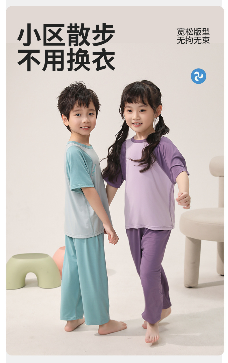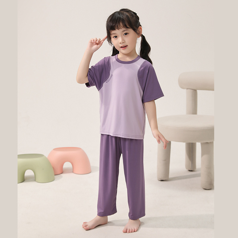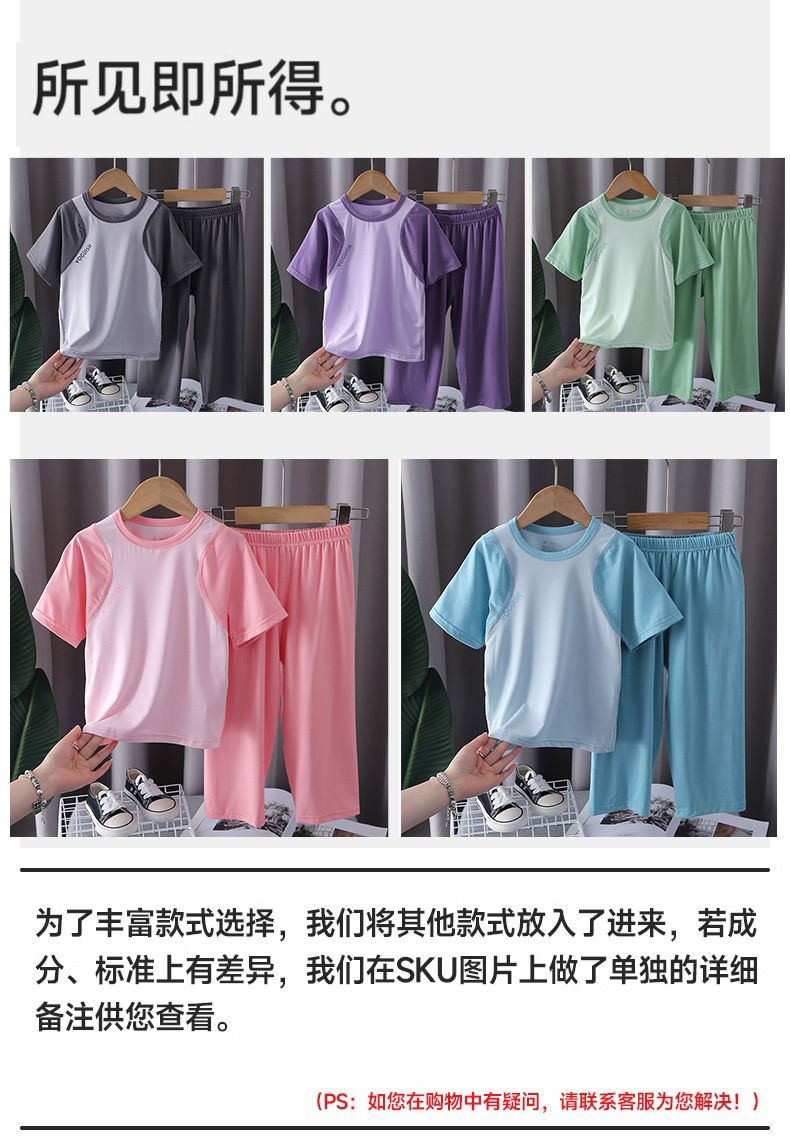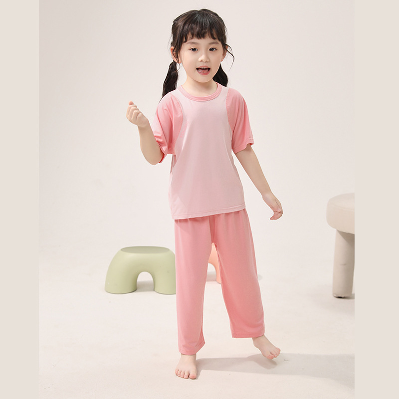 아동용 잠옷, 얇은 모달, 큰 아동복 세트, 남아용 반팔 바지, 여아용 배색 에어컨 의류, 한국스토어 가기