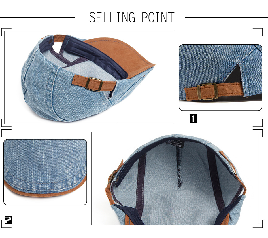 워시드 소프트 데님 프론트 캡, 레트로 남성 캐주얼 피크 캡, 봄, 가을 여성용 다용도 컬러 블록 베레모, 트렌디스토어 가기