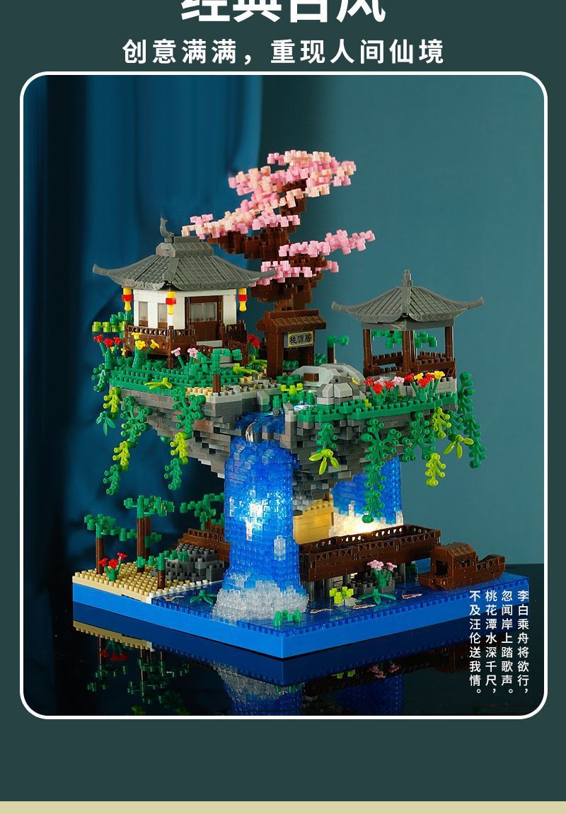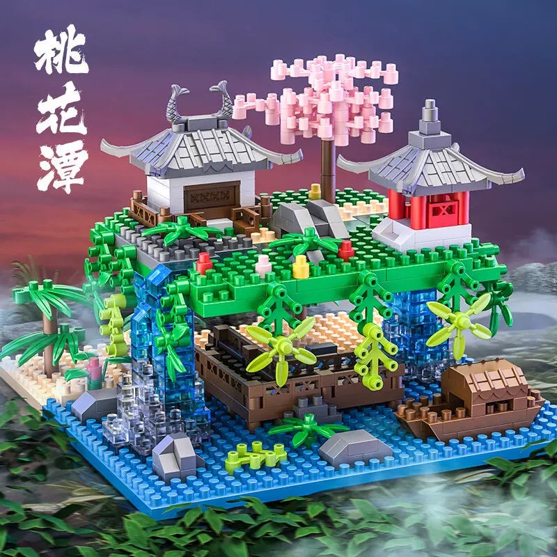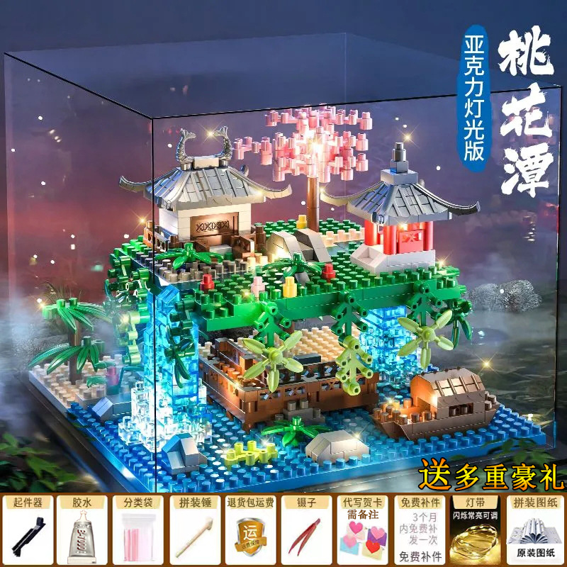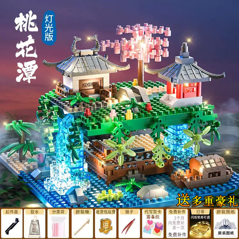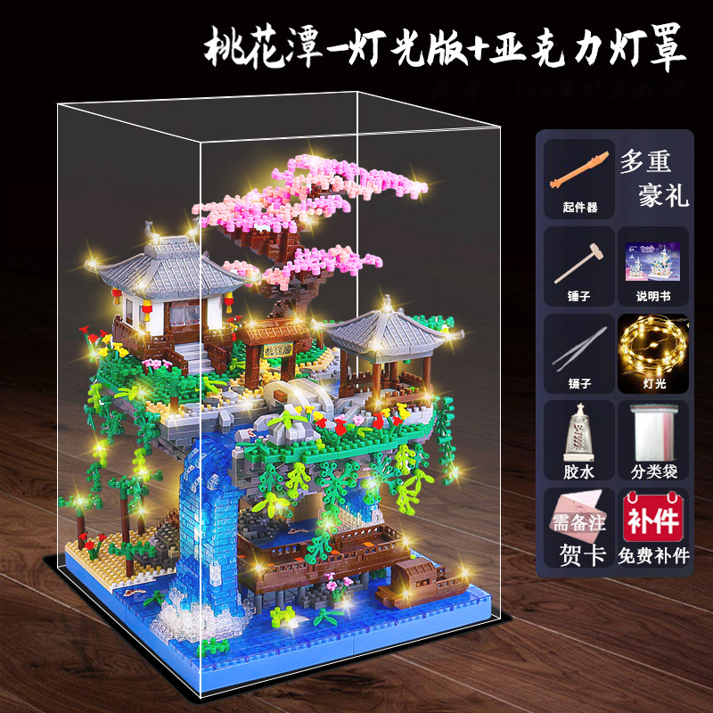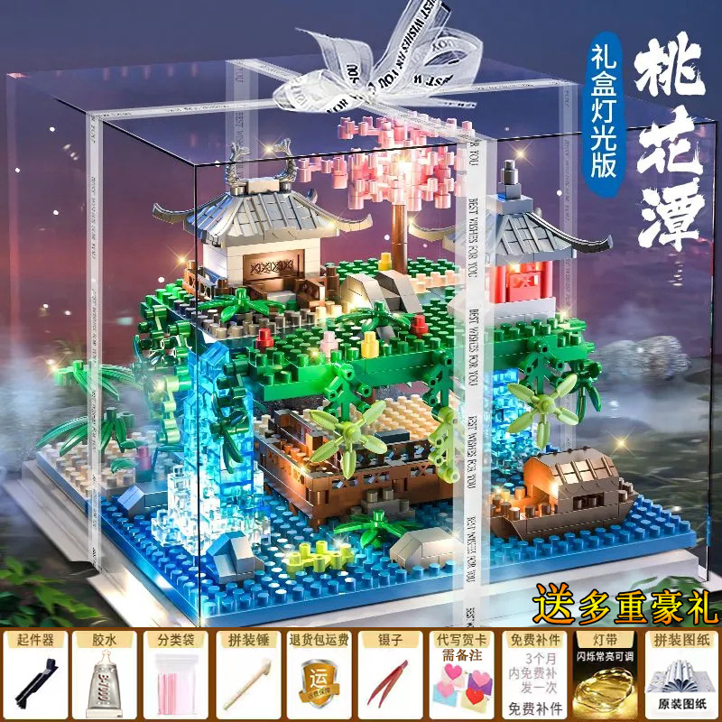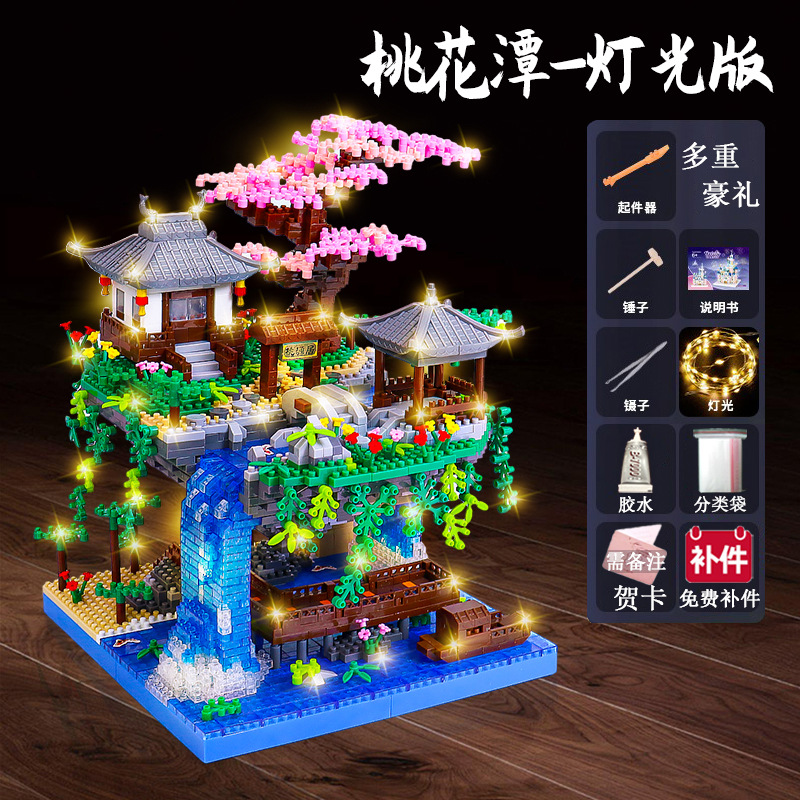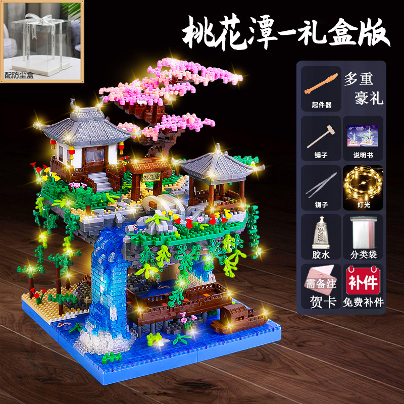 Taohuatan 빌딩 블록 교육 조립 장난감 건물 모델 장식품 작은 입자 수제 입체 퍼즐 어린이 선물스토어 가기