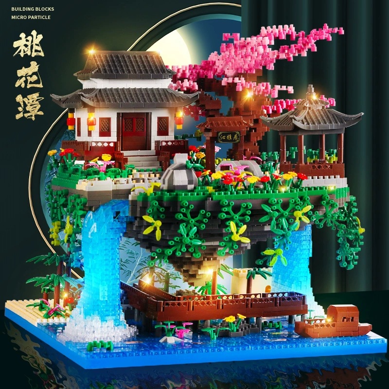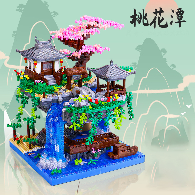 Taohuatan 빌딩 블록 교육 조립 장난감 건물 모델 장식품 작은 입자 수제 입체 퍼즐 어린이 선물