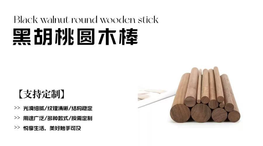 북미산 블랙 월넛 원목 막대, 나무 막대, 나무봉, 나무 막대기, 목재 DIY 공예품, 원목 원형 막대 도매스토어 가기