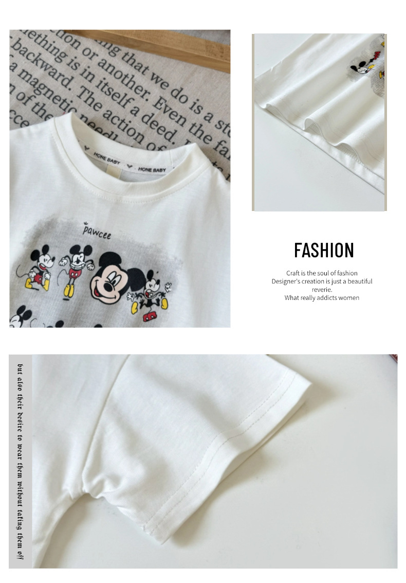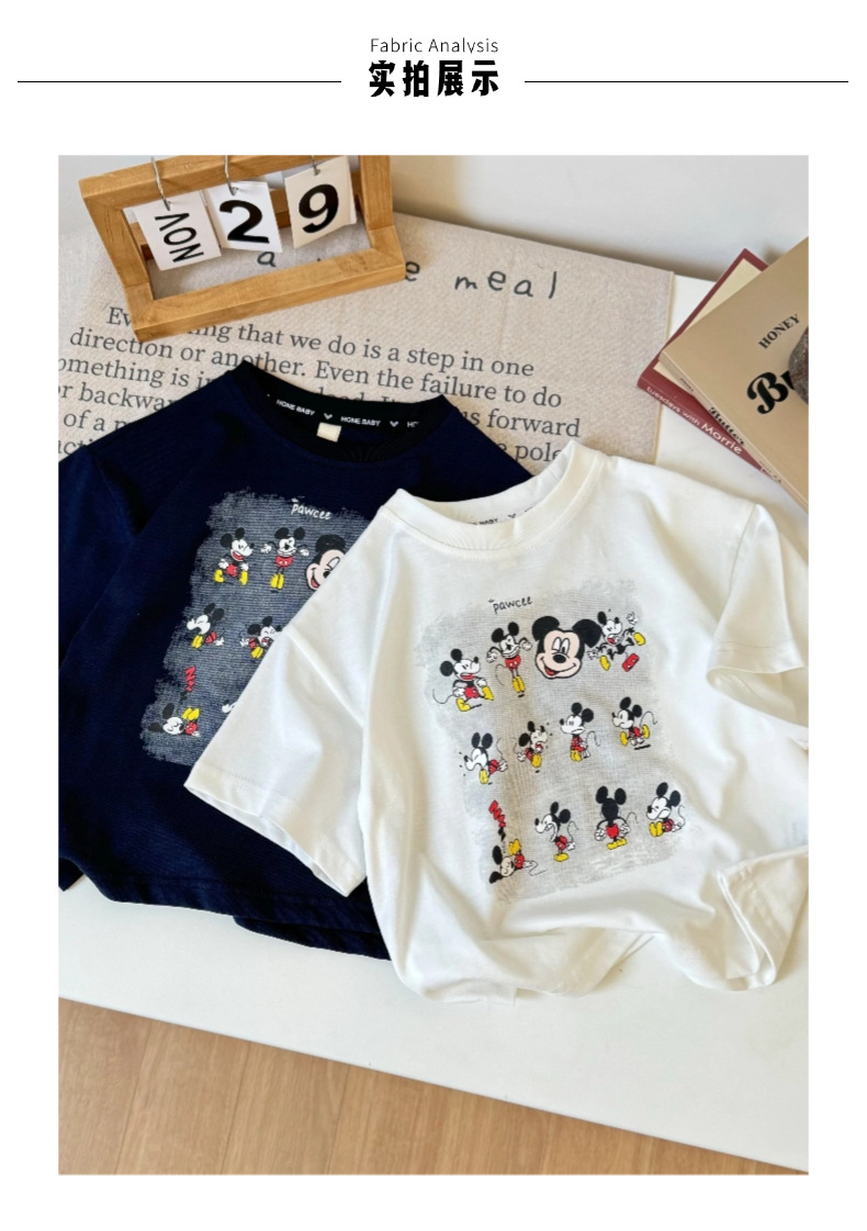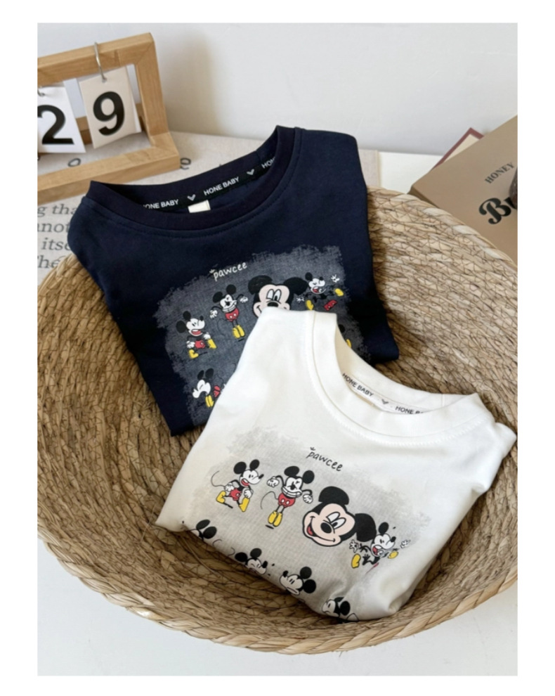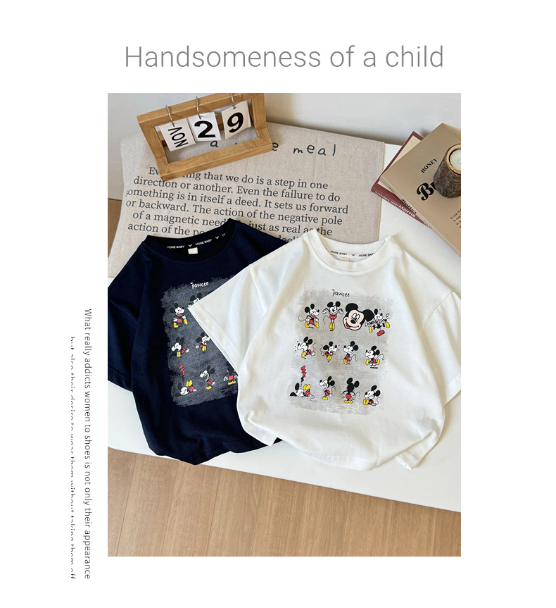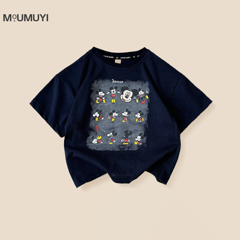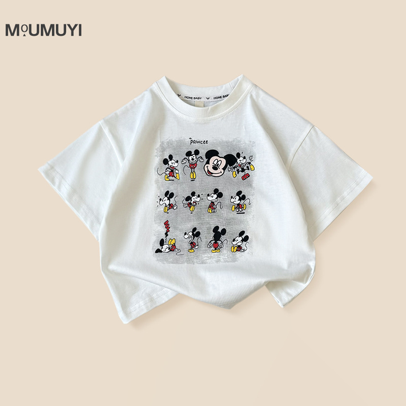 아동용 반팔 티셔츠 2025 새로운 한국 캐주얼 만화 프린트 티셔츠 중소형 아동용 루즈 라운드 넥 탑
