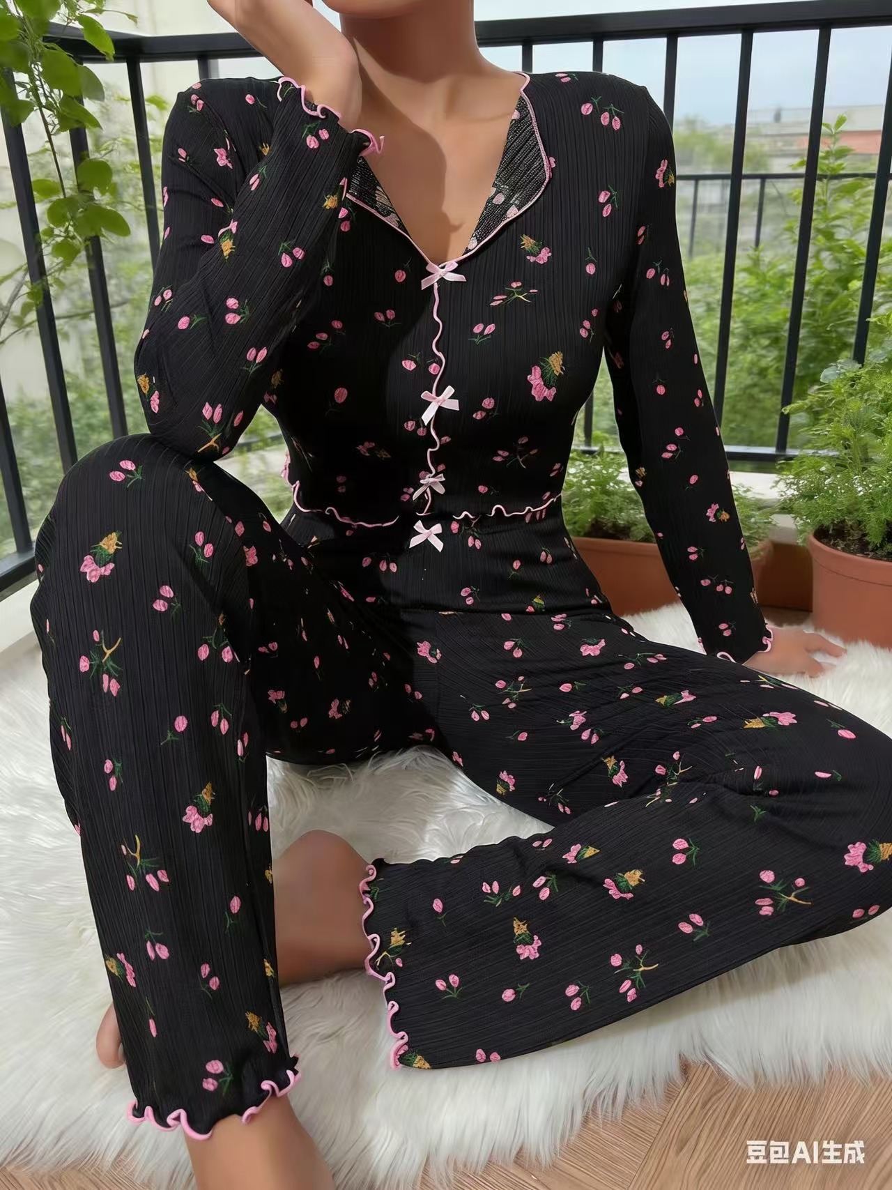 대외 무역 크로스보더 여성용 대형 사이즈 잠옷 2024년 신상 유럽풍 여성용 나이트가운 가을 겨울용 쉬폰 긴팔 긴바지