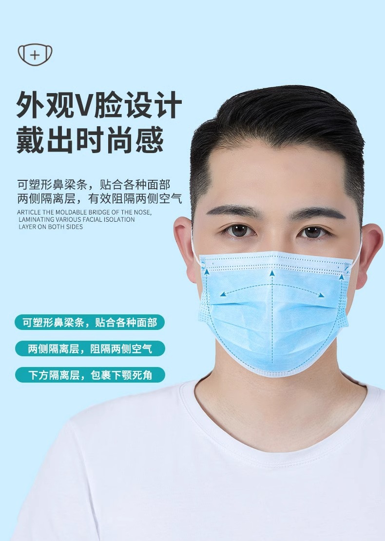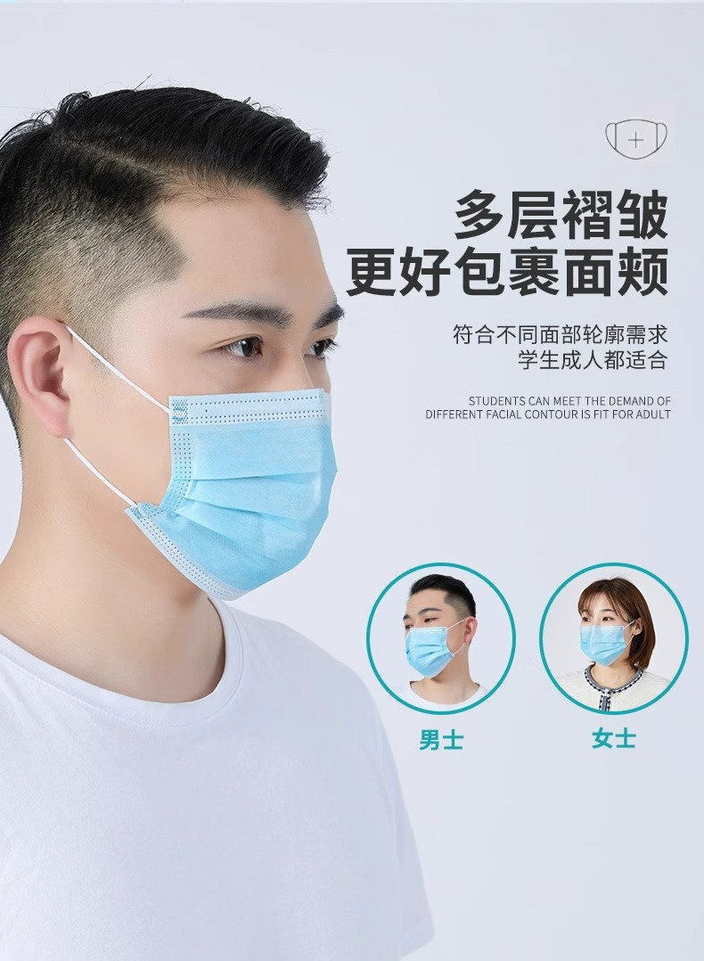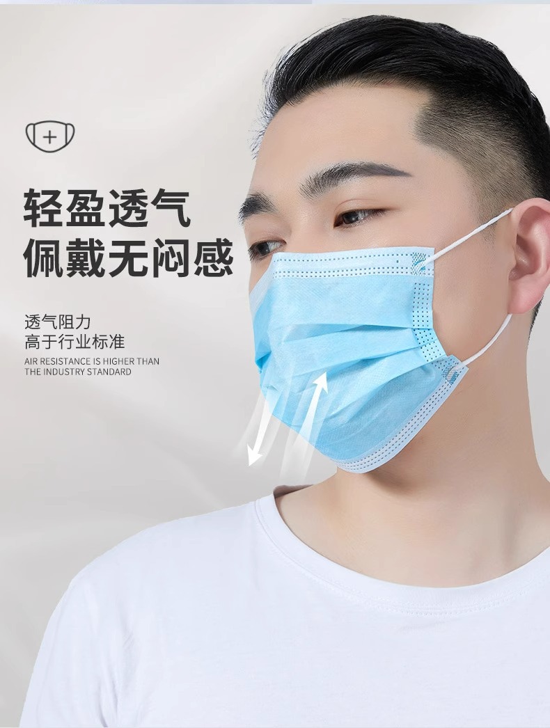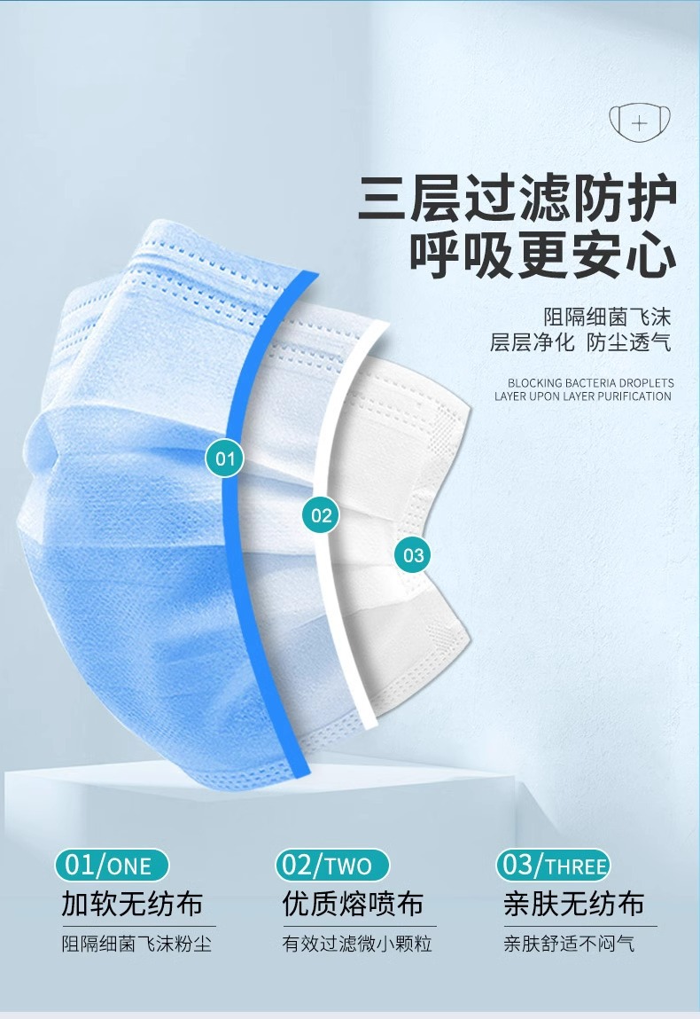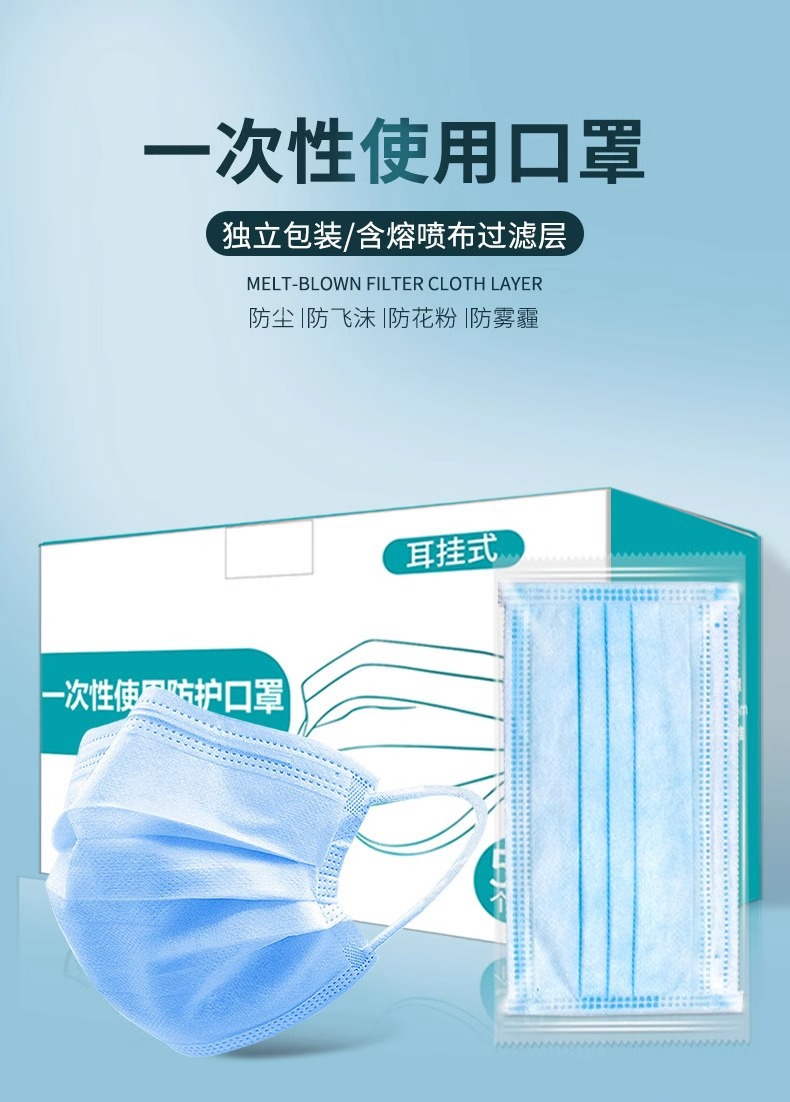 일회용 3층 독립포장 멜트블로운 천 마스크, 통기성, 방진, 산업용 먼지 방지, 케이터링 특수 비의료용스토어 가기