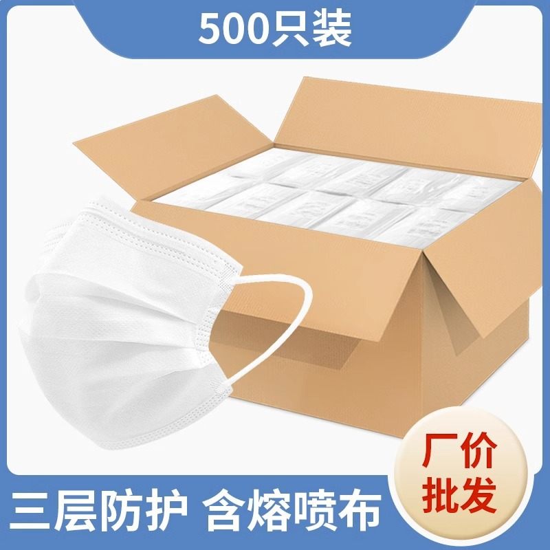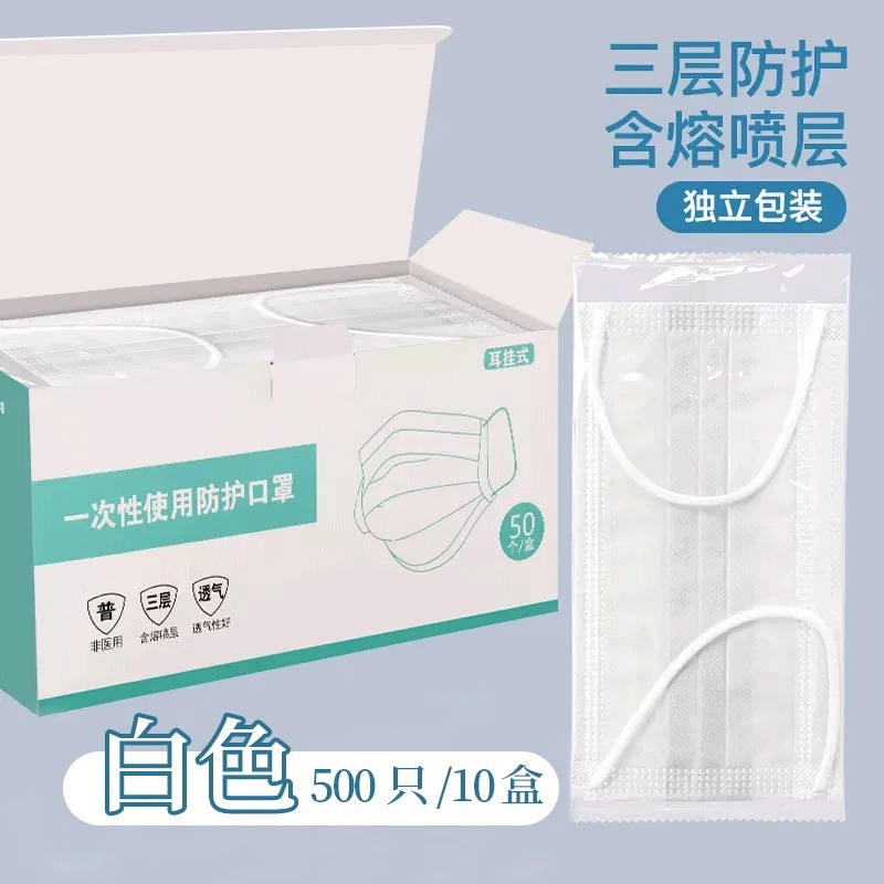 • 프리사이즈 - 화이트 500개 [멜트블로운 원단이 포함된 3겹] 개별 포장