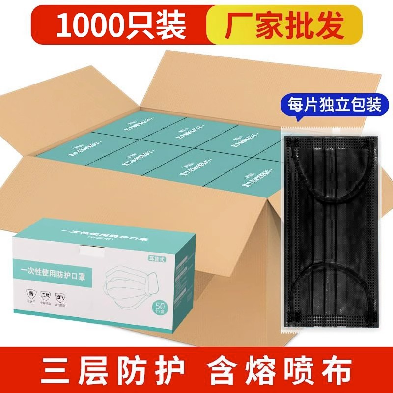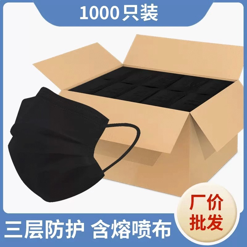• 프리사이즈 - 블랙 1000개 [멜트블로운 원단이 포함된 3겹] 개별 포장