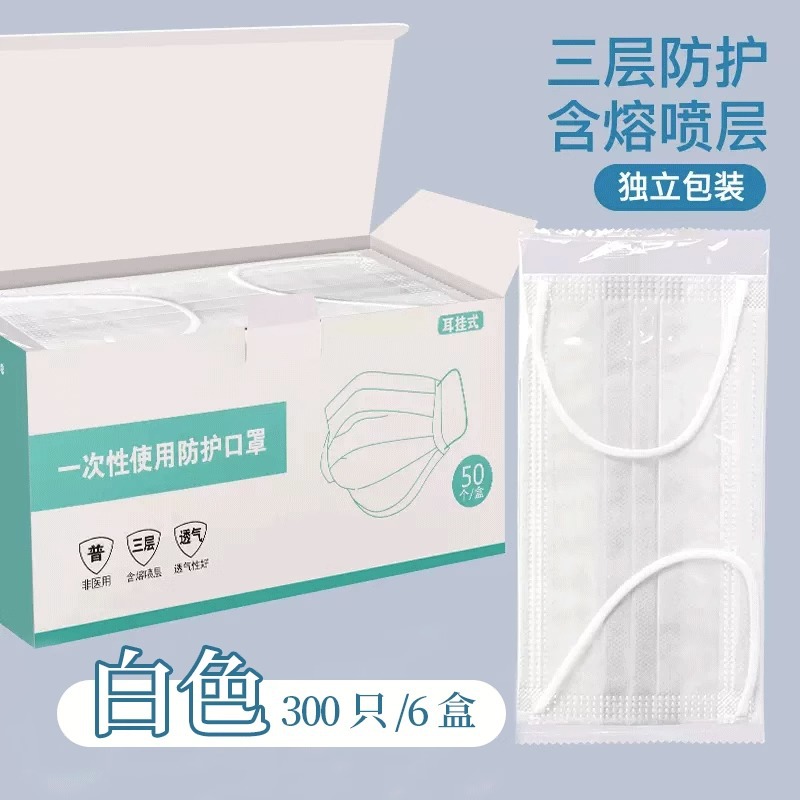 • 프리사이즈 - 화이트 300개 [멜트블로운 원단이 포함된 3겹] 개별 포장