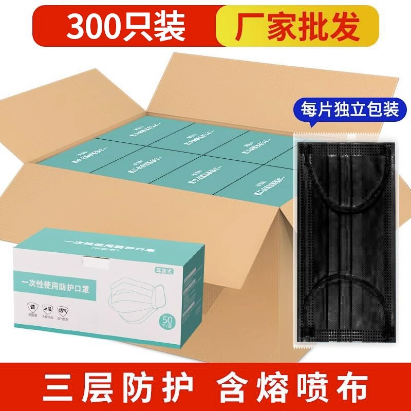 • 프리사이즈 - 블랙 300개 [멜트블로운 원단이 포함된 3겹] 개별 포장