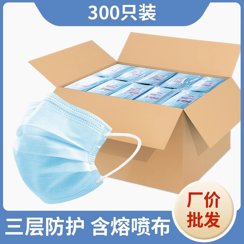• 프리사이즈 - 블루 300개 [멜트블로운 원단이 포함된 3겹] 개별 포장