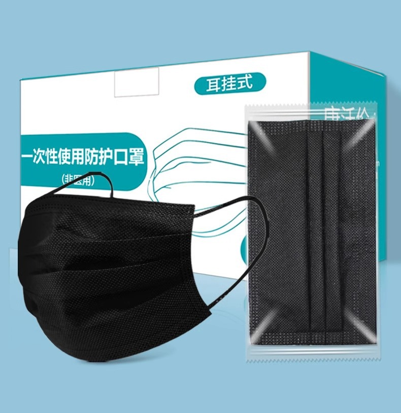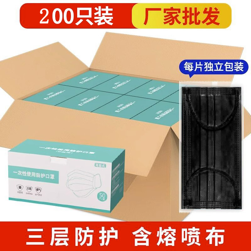 • 프리사이즈 - 블랙 200개 [멜트블로운 원단이 포함된 3겹] 개별 포장