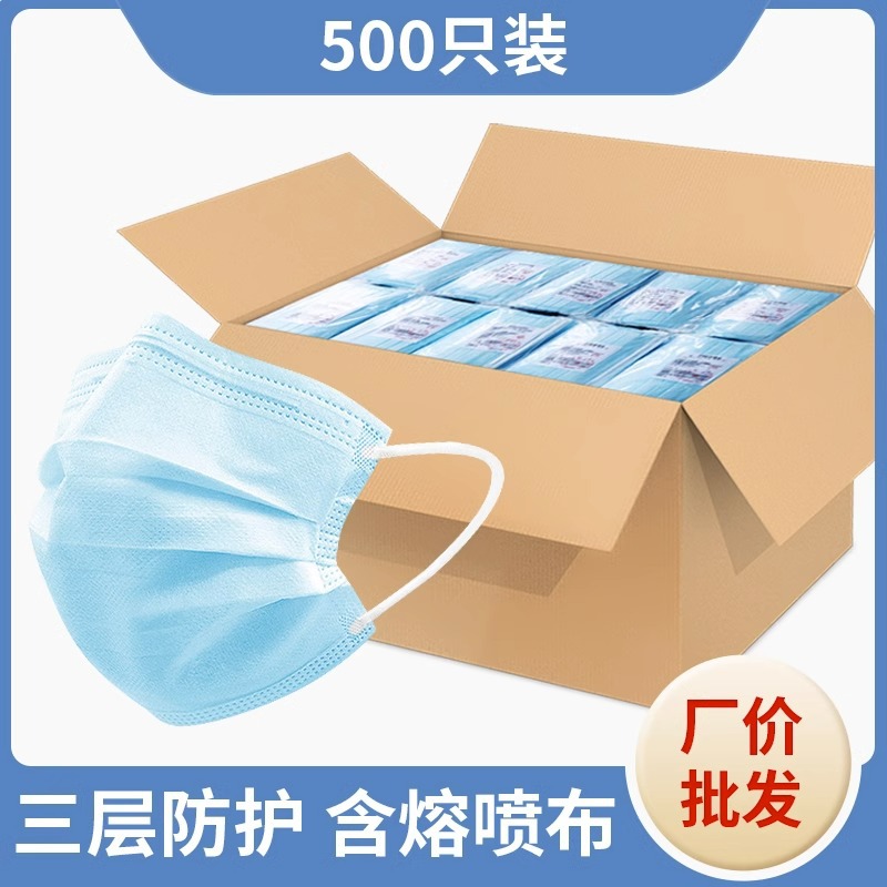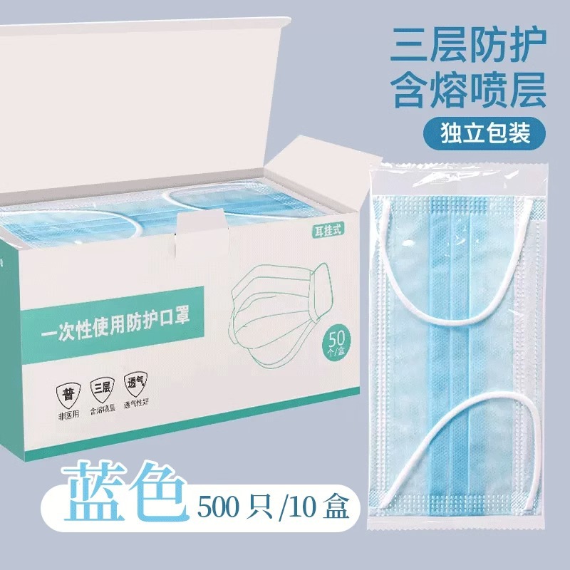 • 프리사이즈 - 블루 500개 [멜트블로운 원단이 포함된 3겹] 개별 포장