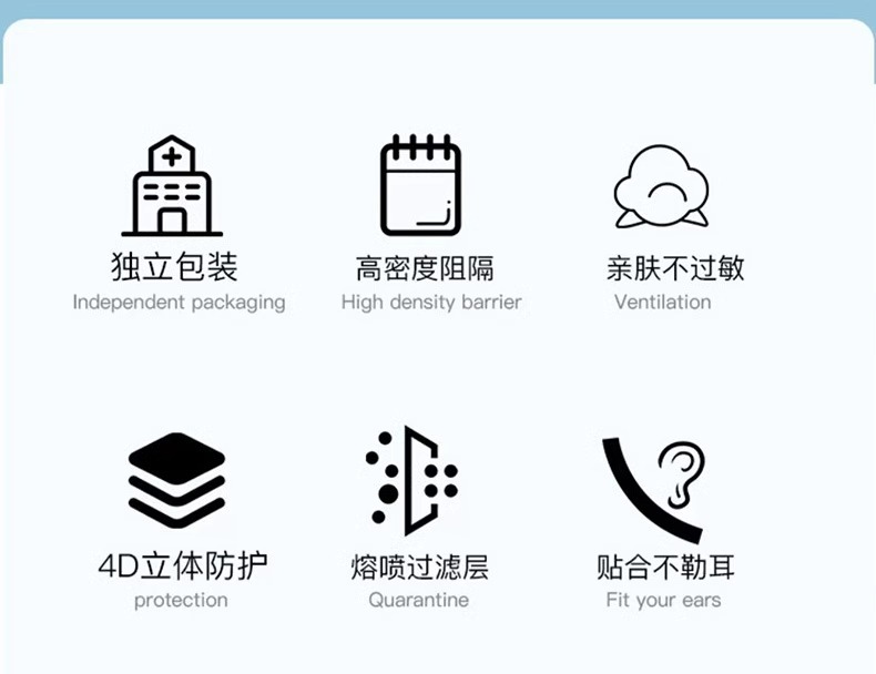 일회용 3층 독립포장 멜트블로운 천 마스크, 통기성, 방진, 산업용 먼지 방지, 케이터링 특수 비의료용
