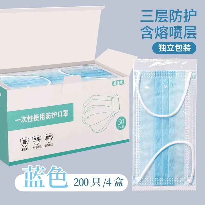 • 프리사이즈 - 블루 200개 [멜트블로운 원단이 포함된 3겹] 개별 포장