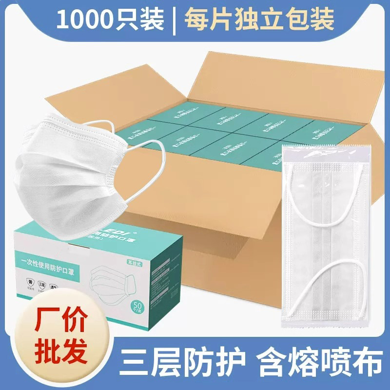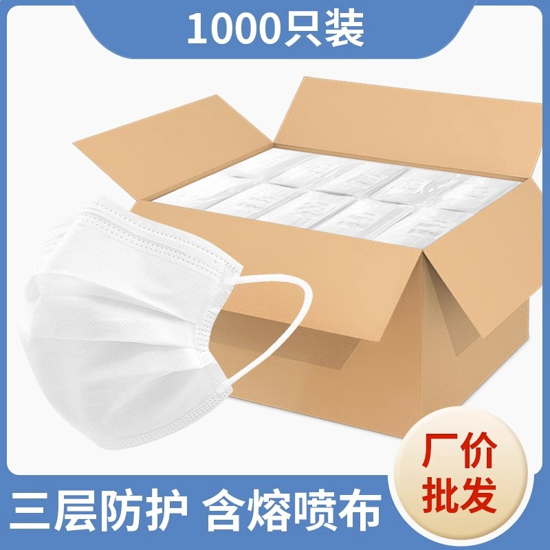 • 프리사이즈 - 화이트 1000개 [멜트블로운 원단이 포함된 3겹] 개별 포장