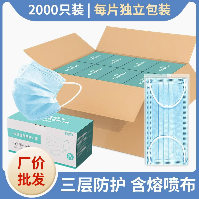 • 프리사이즈 - 블루 2000개 [멜트블로운 원단이 포함된 3겹] 개별 포장