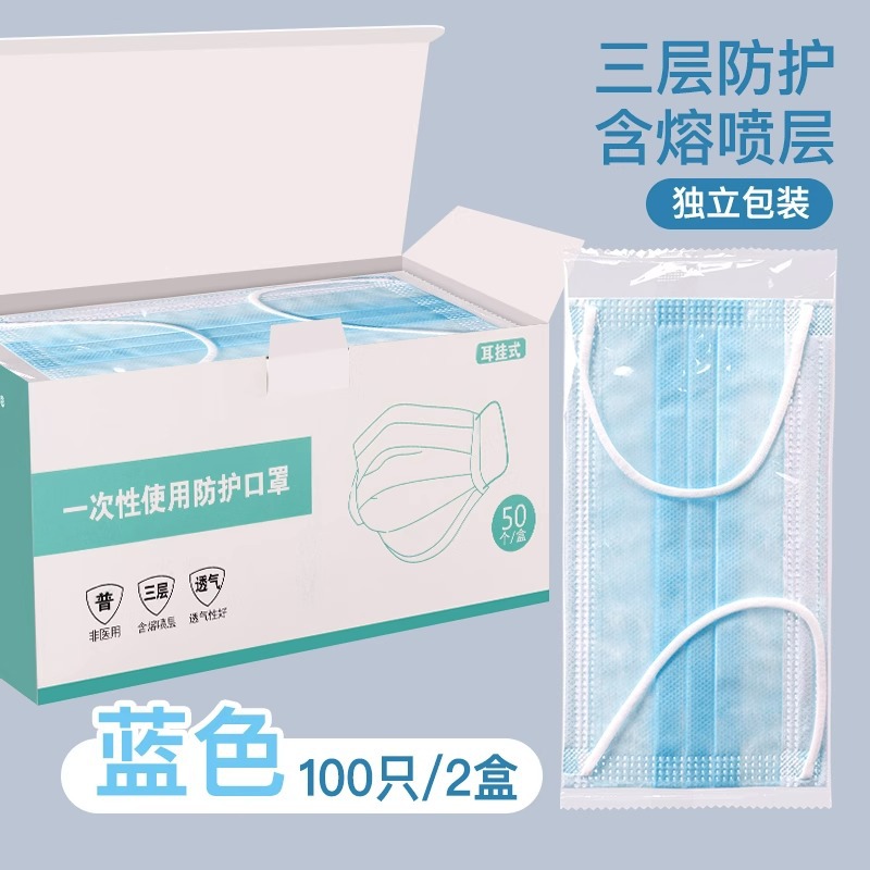 • 프리사이즈 - 블루 100개 [멜트블로운 원단이 들어있는 3겹] 개별 포장